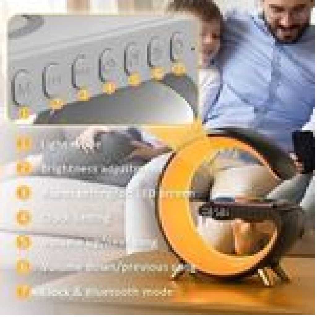 Key Features: ????【All in One】 Intelligent Atmosphere Lamp Bluetooth Speaker Wireless Charger Bedside Lamp Sunrise Wake-up Lamp Polar Lamp Alarm Clock. Size (LxWxH): 9×3.3×9.13 inches. The base of the lamp is made of ABS, it is a good decoration. ????【Bedside Table Lamp with Alarm Clock】 Wake up gently with this amazing Night Light Alarm Clock. The perfect accessory to help you have a better night’s sleep, this night light mimics the sunrise in nature and gently wakes you up while keeping the light soft and not dazzling. ????【15W Fast Charger: With a 15W fast wireless charger. You can use this lamp in any place where you need to charge your mobile phone, such as the bedside, bedroom, living room, home and office. This is really practical. ????【Multi-functional Wireless Charger Atmosphere Lamp】It is not only an atmosphere lamp, but also has 15W fast wireless charging, Bluetooth speaker, music, sleep lamp, sunrise wake-up lamp, atmosphere lamp, bedside lamp, dazzling light effect, Bluetooth audio, clock, alarm clock, etc. You can use this great light when working, studying, reading and sleeping. ????【Perfect Gift : It is an ideal gift for birthday holiday Christmas gift, unique gift for women, men, dad, mom, wife, sisters or best friend.