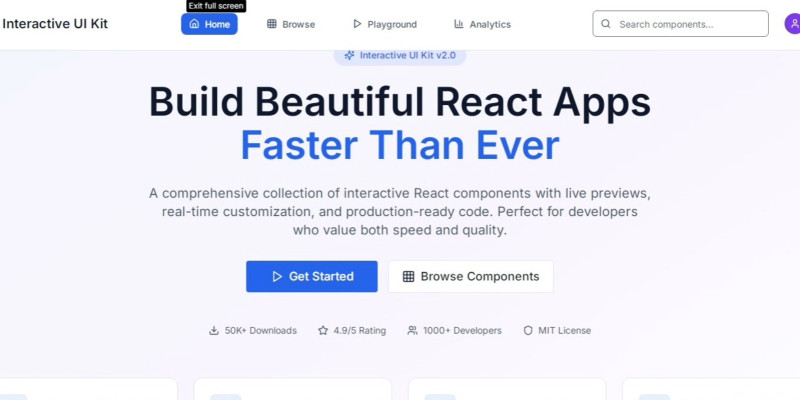 Interactive UI Kit - React Component Library. Beautiful, production-ready React UI components with live previews and fast customization.