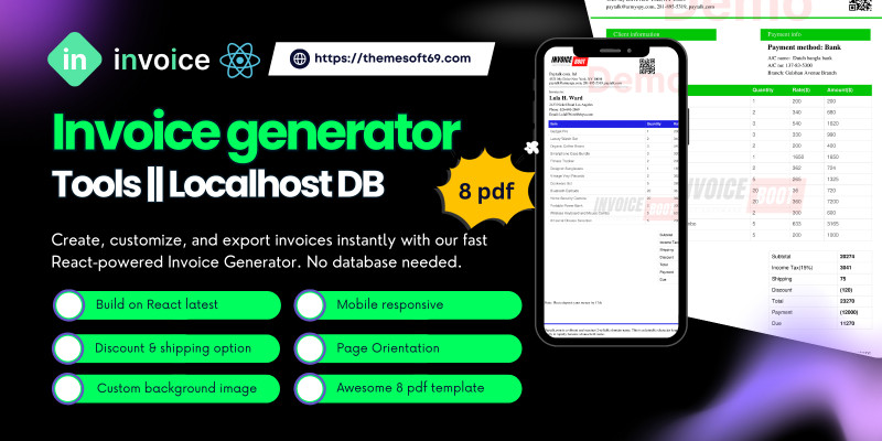 InvoiceCraft React Invoice Generator Tools . Create and customize invoices instantly with React, Tailwind, local storage, PDF export, templates, and quick editing tools.