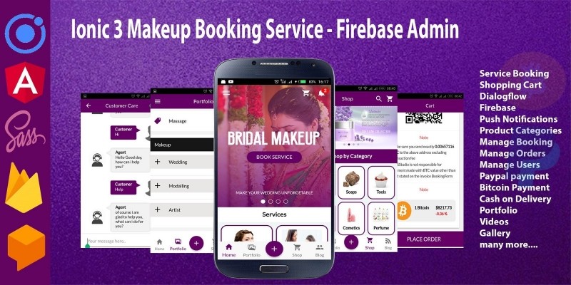 Ionic 3 Makeup Booking Service - Firebase Admin. Makeup Service Booking Appointment with shopping cart and Admin firebase Backend