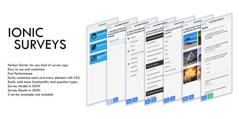 Ionic Surveys - Survey Mobile App. Ionic Surveys is a fast and easy to customize ionic starter app. Start any kind of survey or forms apps in no time.