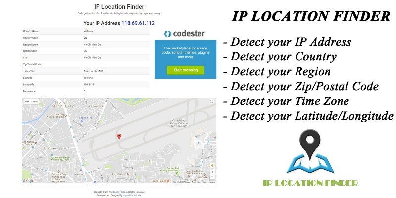 IP Location Finder Script. Find a geolocation of an IP address including latitude, longitude, city, region and country