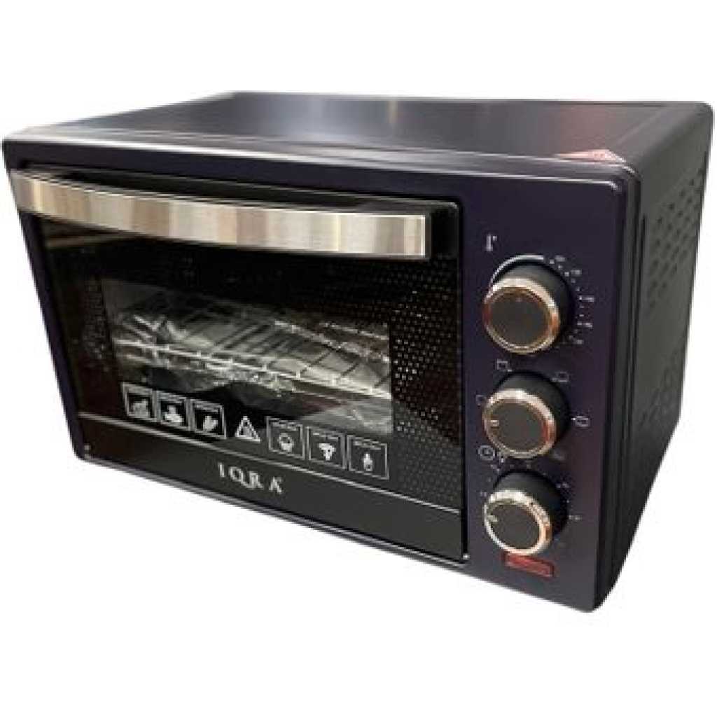 IQRA 19 Litre Premium Electric Oven IQ-EO22, 60 Minute Timer, Low Power Consumption Of 1280W, Comes With Oven Lamp, Has a Rotisserie, Baking Tray And Grill, Comes With Wire Rackrotisserie Handle And a