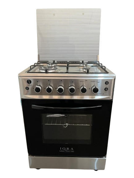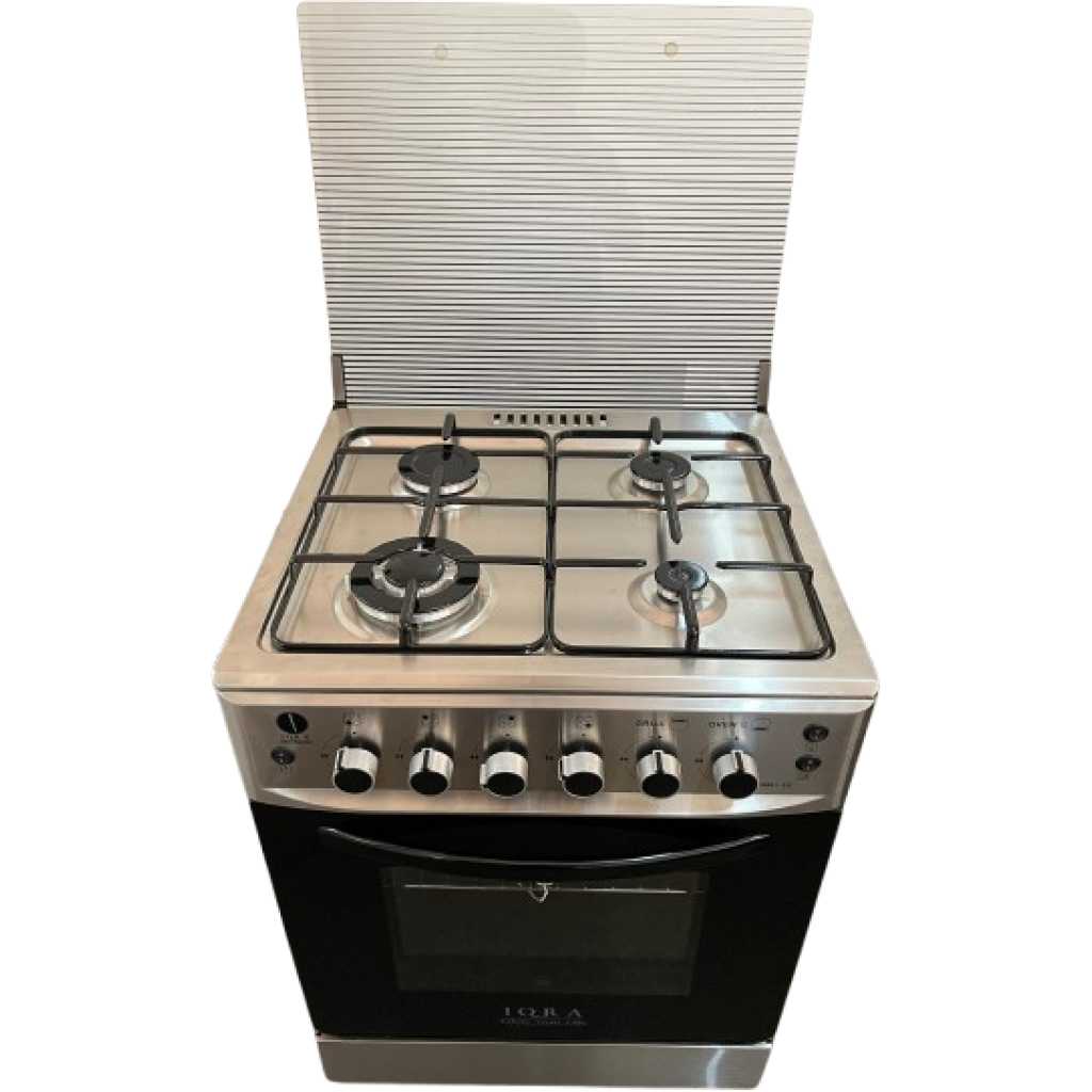 IQRA 60X60 COOKER Stainless steel body and hop top Hop top 4 GAS Sabaf BurnerΦ130+Φ100+Φ70 Shabaf gas burners, Hop top GAS burners and oven with pulse ignition Hob with enameled pan support Oven Capacity: 64L Oven with full high-qualified enameled inner Heat-resistant Knobs Painted black steel door handle OVEN LAMP AND ROTISSERRIE Oven with one pan and one electroplated rack With tempered glass cover Double glass oven door LGP. 2800Pa with ø11.5 connector 1.5M 3×0.75mm² wire with BS cord Completed unit carton with polyfoam Key Features: IQRA 60X60 COOKER Stainless steel body and hop top Hop top 4 GAS Sabaf BurnerΦ130+Φ100+Φ70 Shabaf gas burners, Hop top GAS burners and oven with pulse ignition Hob with enameled pan support Oven Capacity: 64L Oven with full high-qualified enameled inner Heat-resistant Knobs Painted black steel door handle OVEN LAMP AND ROTISSERRIE Oven with one pan and one electroplated rack With tempered glass cover Double glass oven door LGP. 2800Pa with ø11.5 connector 1.5M 3×0.75mm² wire with BS cord Completed unit carton with polyfoam