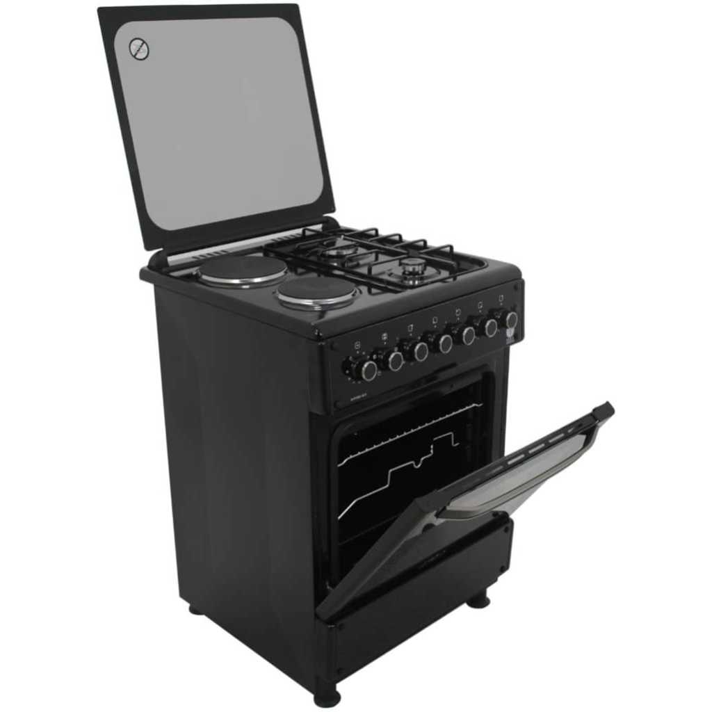 Key Features: 2 Multigas (Euro Type Pool) Burners + 2 Hot Plate (145mm-1000Watt)60x60cm cooker Electric Oven with Up and Down Heating Elements Thermostat, Electric Grill, Cast Iron Pan Support, Push Button Ignition for Hob Burners, Glass Top Lid, Oven Lamp, Rotisserie, Timer, Cool Door II(Removable inner Glass), 1 Oven Tray, 1 Oven Grid, Adjustable Feet, Hob Stainless Steel/Rest Silver Color(Glass Panels Elite Design) 1-year warranty