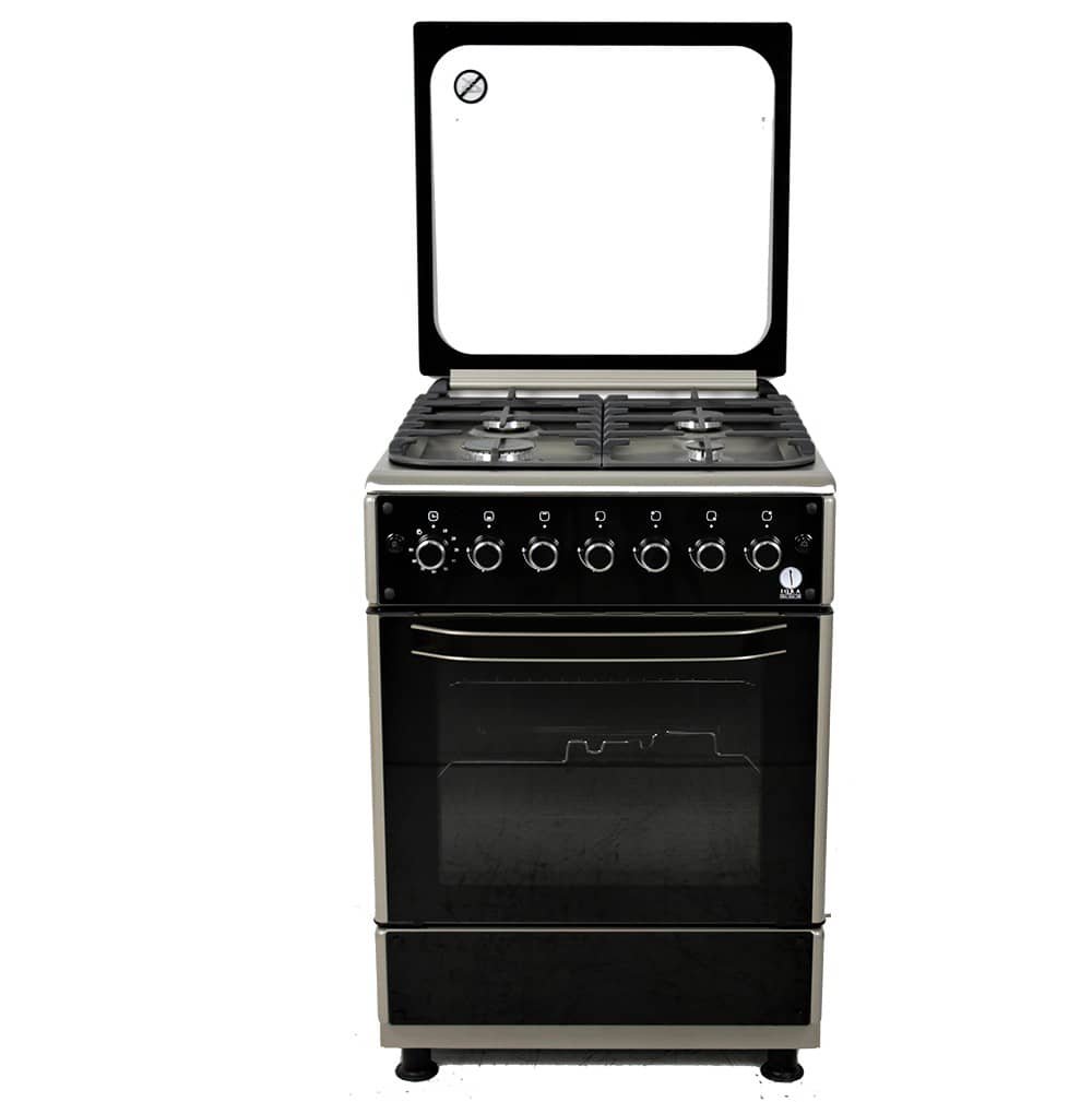 IQRA 50x60cm 4 Gas Burners Cooker with Electric Oven and Grill Oven Timer, Cast Iron Pan Support IQRA Full Gas 50x60cm cooker Electric Oven with Up and Down Heating Elements Thermostat, Electric Grill, Cast Iron Pan Support, Push Button Ignition for Hob Burners, Glass Top Lid, Oven Lamp, Rotisserie, Timer, Cool Door II(Removable inner Glass), 1 Oven Tray, 1 Oven Grid, Adjustable Feet, Hob Stainless Steel/Rest Silver Color(Glass Panels Elite Design) 1-year warranty