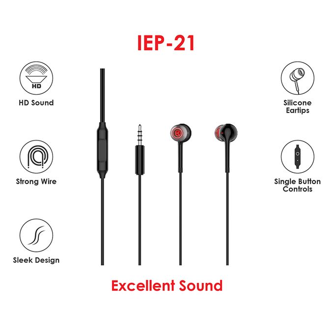 Itel IEP-21 Wired Sports Earphones with HD Sound, 1.2m Dynamic Drivers, Sweat and Water Resistance, Superior Coated Cable, in-Line Mic