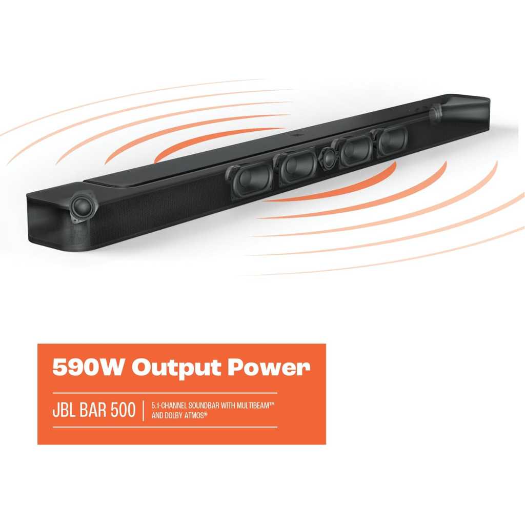 JBL Bar 500: 5.1-Channel Soundbar, 590W, with MultiBeam™ and Dolby Atmos®, Black