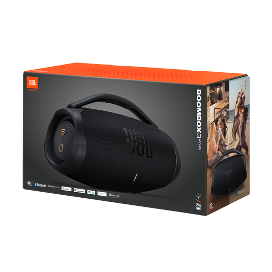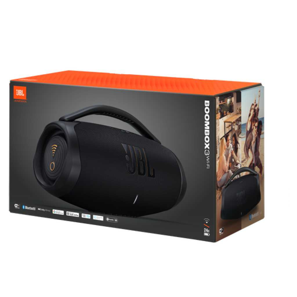 Massive JBL Original Pro Sound with deepest bass Fill the air with massive JBL Original Pro sound with deep, powerful bass. The JBL Boombox 3 Wi-Fi makes it feel like you’ve just stepped into the middle of a concert thanks to its powerful bass from a built-in subwoofer, two mid-range drivers, and dual tweeters, all of which make up its best-in-class 3-way speaker design.