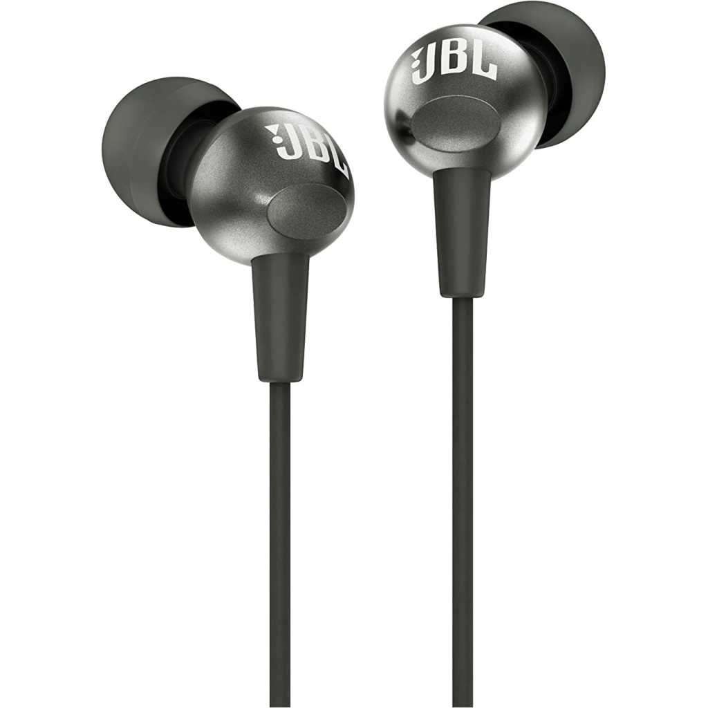 JBL C200SI, Premium in Ear Wired Earphones with Mic, JBL Signature Sound, One Button Multi-Function Remote, Angled Earbuds for Comfort fit (Gun Meta