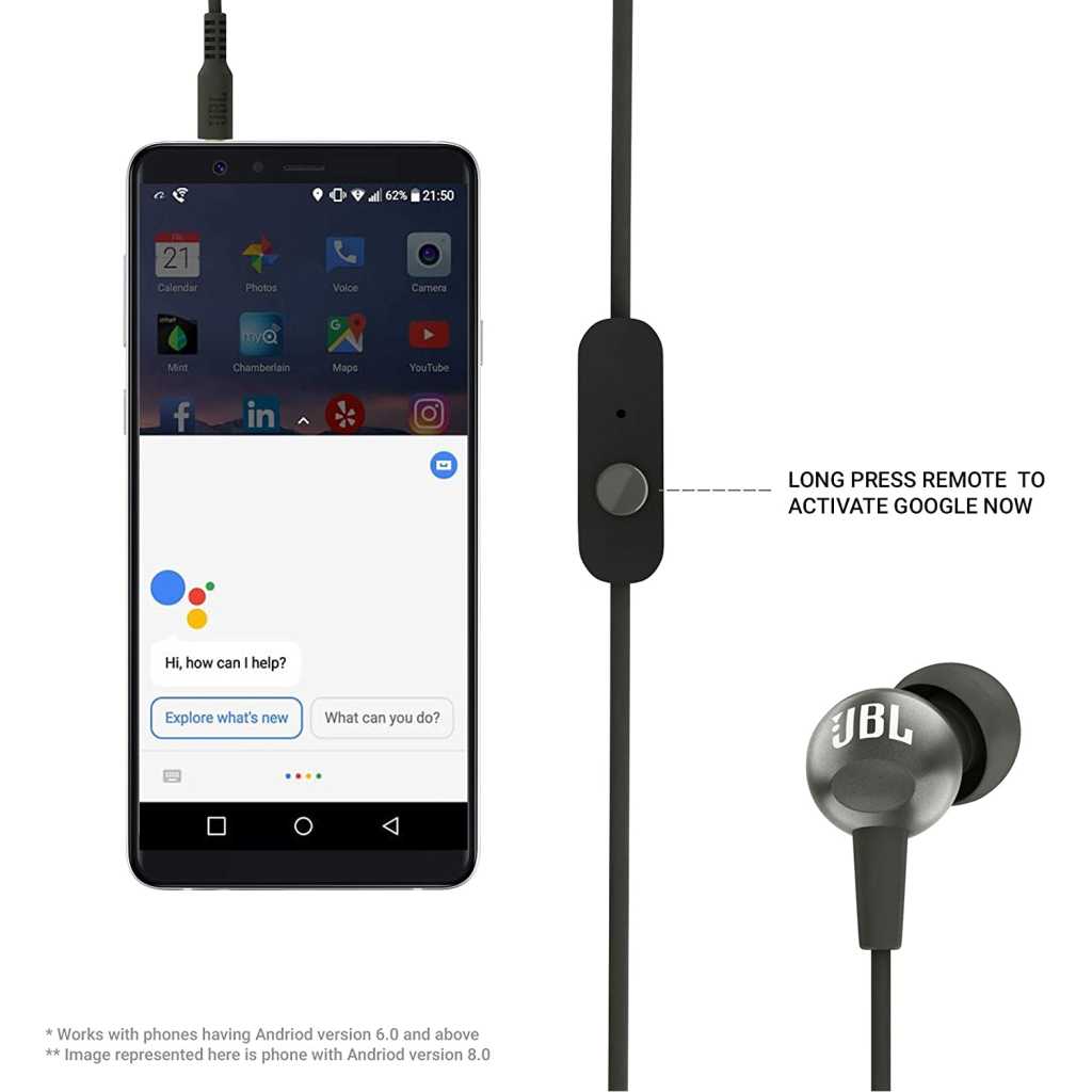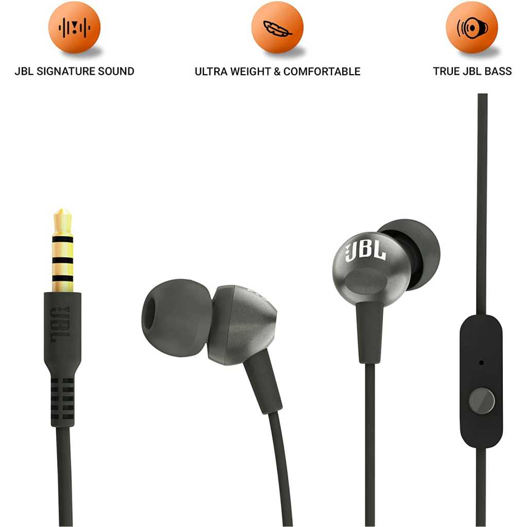 JBL C200SI, Premium in-Ear Wired Earphones with Mic, JBL Signature Sound. Key Features: JBL C200SI, Premium in-Ear Wired Earphones with Mic, JBL Signature Sound. JBL Signature Sound True Powerful Bass. Driver sensitivity 100±3dBSPL, 1mW. Premium matallic finish with better & Ergonomics. Troubleshooting step: Kindly ensure 3.5mm port on Host device is clean and dust free and 3.5mm jack of the earphone is adequately inserted inside the Host device port, Maximum SPL 5mW. Rated power input 3mW Noise Cancelling Microphone Quick Launch Access to Google Assistant / Siri One-Button Universal Remote with Mic Lightweight and Comfortable with 3 sizes of ear tips What’s in the box : 1 pair JBL C200SI headphone, 3 sets of ear tips (S, M, L), 1 Warranty and safety card Frequency range 20-20kHz