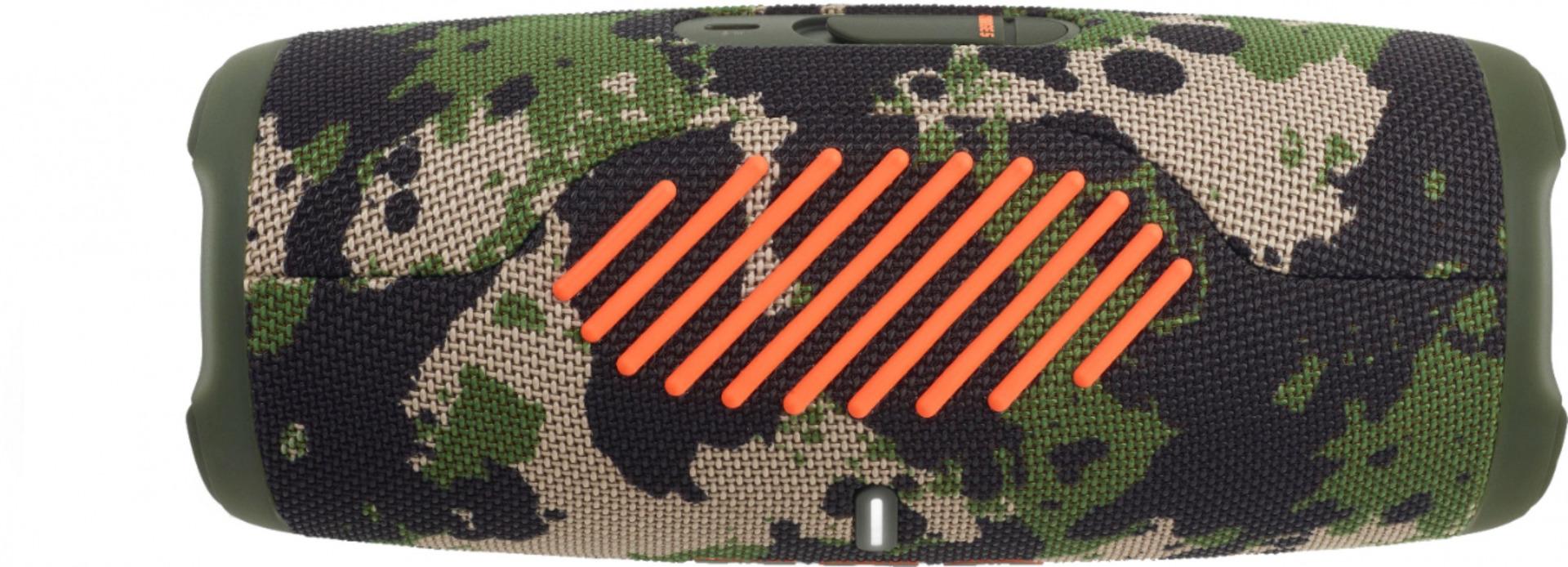 JBL Charge 5 Speaker, Portable IP67 Waterproof Wireless Bluetooth Speaker, JBL Pro Sound, 20 Hours Play Time, Built-in 7500mAh Power Bank- Camo Play and charge endlessly. Take the party with you no matter what the weather. The JBL Charge 5 speaker delivers bold JBL Original Pro Sound, with its optimized long excursion driver, separate tweeter and dual pumping JBL bass radiators. Up to 20 hours of playtime and a handy powerbank to keep your devices charged to keep the party going all night. Rain? Spilled drinks? Beach sand? The IP67 waterproof and dustproof Charge 5 survives whatever comes its way. Thanks to PartyBoost, you can connect multiple JBL PartyBoost-enabled speakers for a sound big enough for any crowd. With all-new colors inspired by the latest street fashion trends, it looks as great as it sounds. Bold JBL Original Pro Sound Take the amazing power of JBL Pro Sound with you. The JBL Charge 5 has an optimized long excursion driver, a separate tweeter, and dual JBL bass radiators, all delivering impressively rich and clear audio. Get that big room sound, even when outdoors.