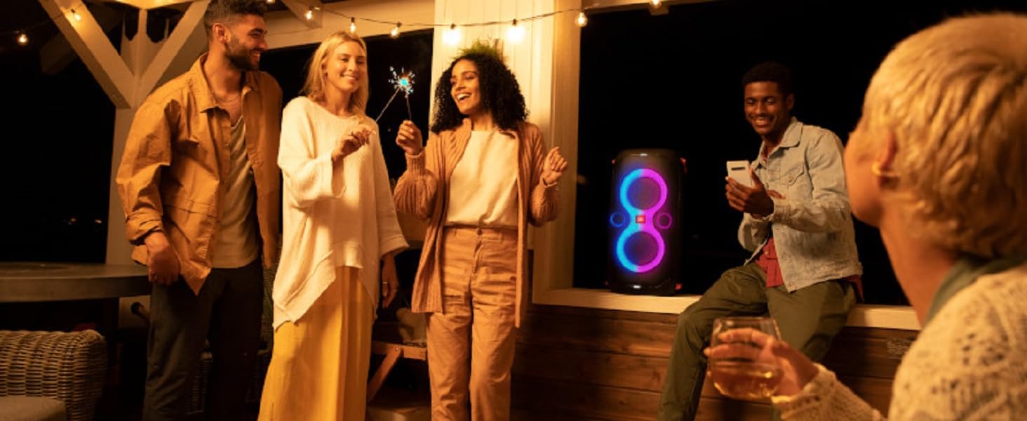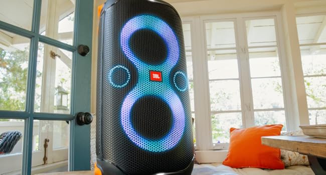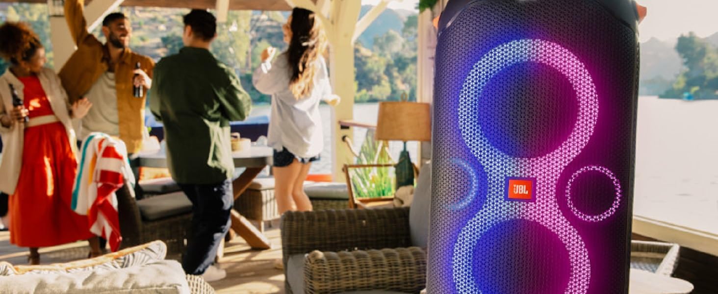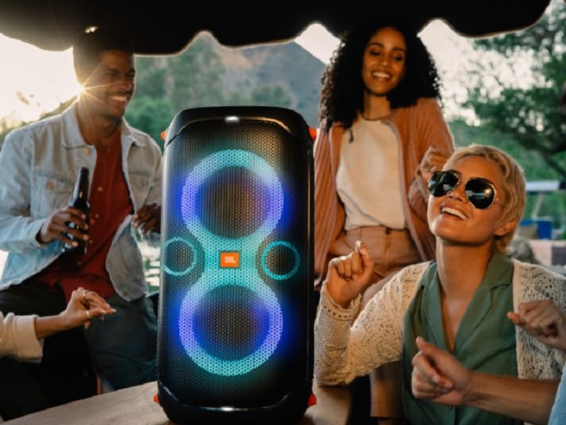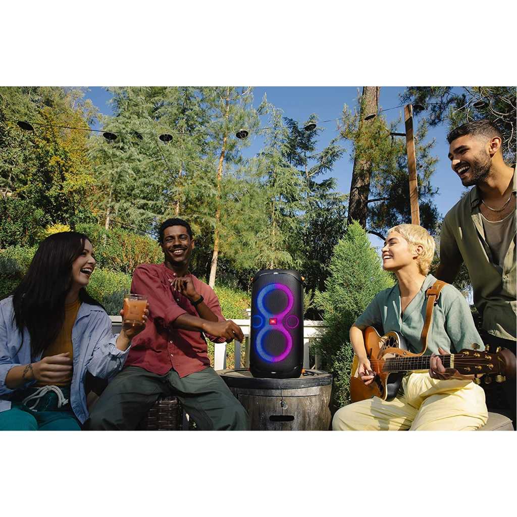 JBL PartyBox 110 – Portable Party Speaker With Built-in Lights, Powerful Sound, And Deep Bass – Black. JBL Partybox 110 Portable party speaker with dazzling lights JBL PartyBox 110 – Portable party speaker with built-in lights, powerful sound and deep bass, 160W power output, IPX4 splashproof, 12 hours of playtime, App, Bluetooth, JBL True Wireless Stereo for 2 party speakers pairing, speaker for home, outdoor, exercise and parties.
