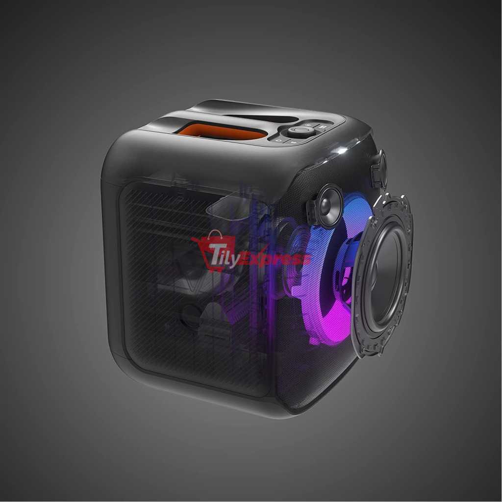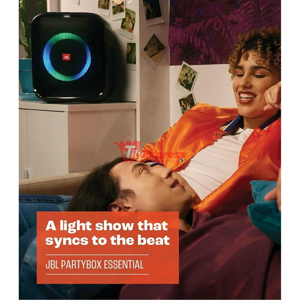 JBL Partybox Encore Essential: 100W sound, built-in dynamic light show, and splash-proof design. Nothing beats incredible JBL Original Pro sound with deep bass. The dynamic light show offers a fun ring light and a cool strobe effect that syncs to the beat of your music. No plug? No problem. The JBL PartyBox Encore Essential keeps the party going wherever you are with up to 6 hours of play time. Dancing on the beach? Poolside party? The JBL PartyBox Encore Essential is IPX4 splashproof, so you never have to worry about the party getting too wet or wild. A JBL PartyBox is not enough? Pair two speakers wirelessly with True Wireless Stereo (TWS) technology for even bigger, bolder sound. Key Features: JBL Partybox Encore Essential: 100W sound, built-in dynamic light show, and splash-proof design. Nothing beats incredible JBL Original Pro sound with deep bass. The dynamic light show offers a fun ring light and a cool strobe effect that syncs to the beat of your music. No plug? No problem. The JBL PartyBox Encore Essential keeps the party going wherever you are with up to 6 hours of play time. Dancing on the beach? Poolside party? The JBL PartyBox Encore Essential is IPX4 splashproof, so you never have to worry about the party getting too wet or wild. A JBL PartyBox is not enough? Pair two speakers wirelessly with True Wireless Stereo (TWS) technology for even bigger, bolder sound.