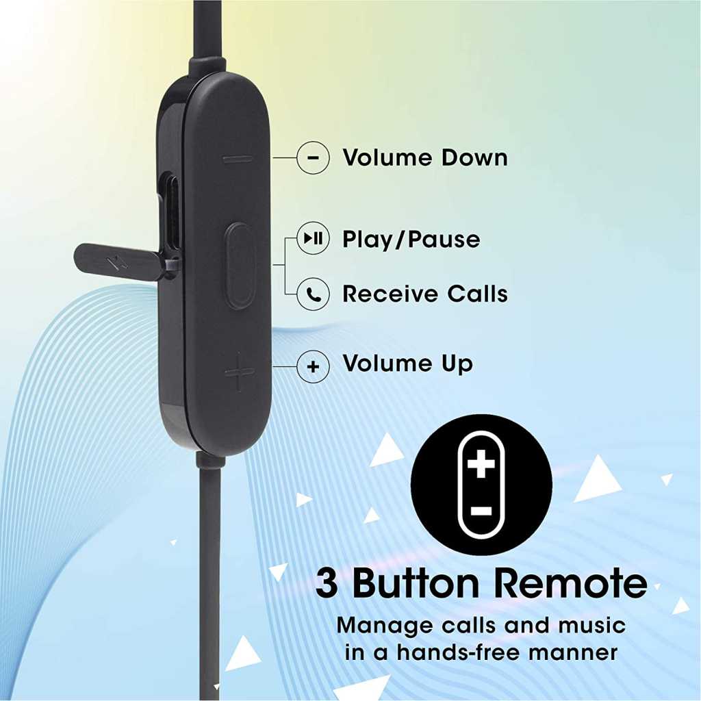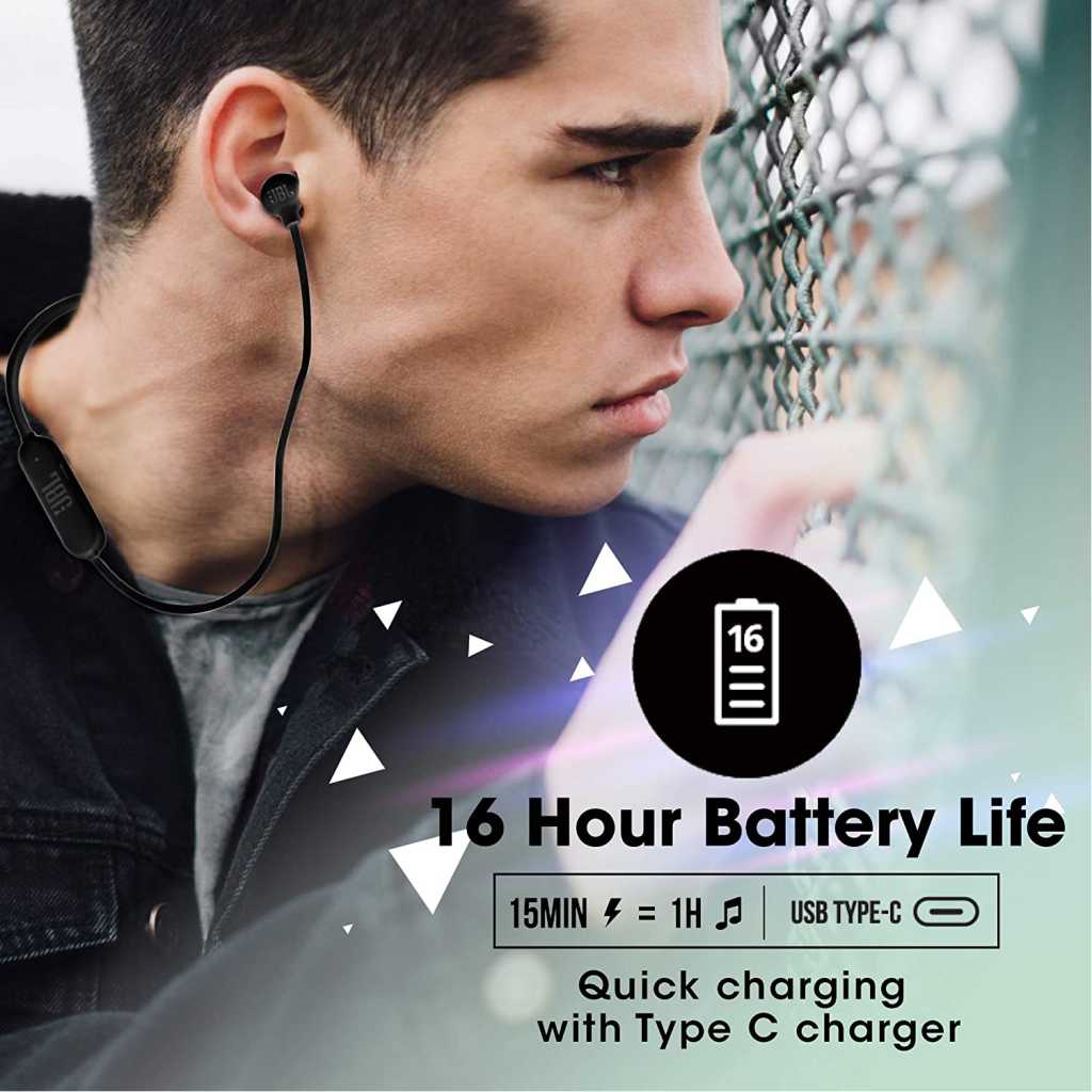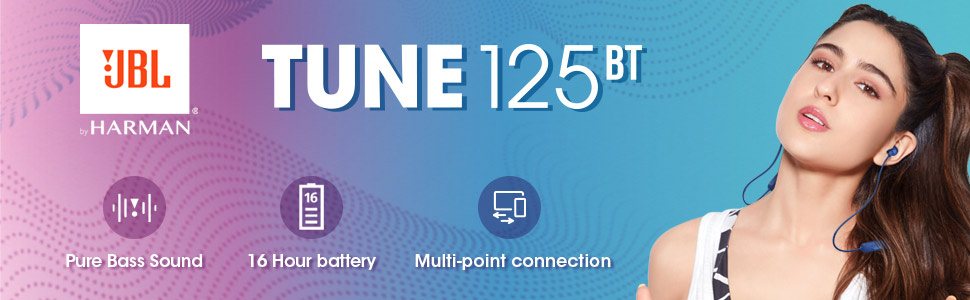 JBL Tune 125BT by Harman Wireless Neckband Bluetooth in Ear Headphone with Mic (Black). Key Features: JBL Tune 125BT by Harman Wireless Neckband Bluetooth in Ear Headphone with Mic (Black). JBL Pure Bass Sound 16 Hours playtime under optimum audio setting Quick Charging – 15 min of charge provides one 1 Hour Playtime and while overall charging takes less than 2 Hours Multi-Point Connectivity allowing Seamless Switch Between two Devices Seamless connectivity with Bluetooth 5.0