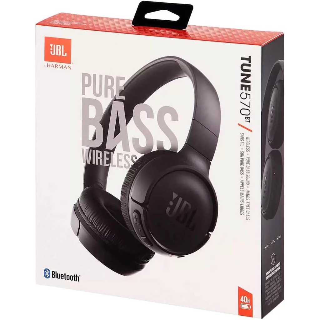 This brand new JBL Tune 570BT wireless stereo black headband headphones let you stream powerful JBL Pure Bass sound with no strings attached. Easy to use, this universal Bluetooth headset with built-in microphone provides up to 40 hours of pure pleasure and an extra 2 hours of battery with just 5 minutes of power with the USB-C charging cable. And if a call comes in while you are watching a video on another device, the JBL Tune 570BT seamlessly switches to your mobile. Bluetooth 5.0 enabled and designed to be comfortable, the JBL Tune 570BT headphones also allow you to connect to Siri or Google without using your mobile device. Available in multiple fresh colors and foldable for easy portability, the JBL Tune 570BT headphones are a grab go solution that helps you to inject music into every aspect of your busy life.