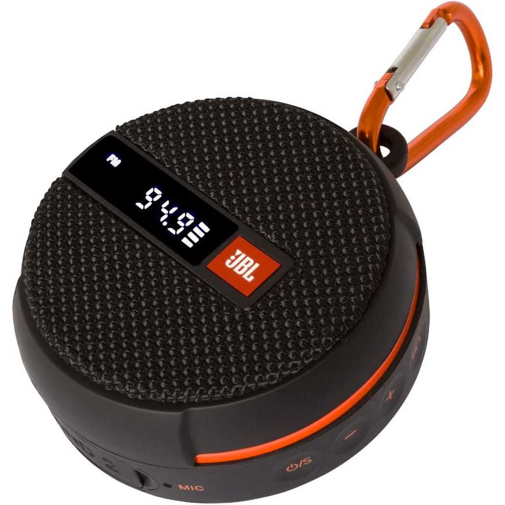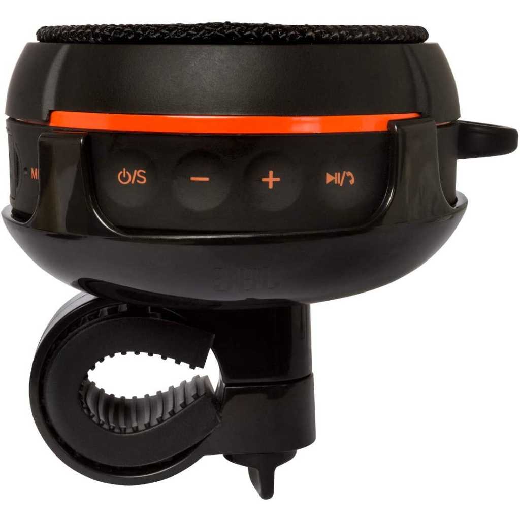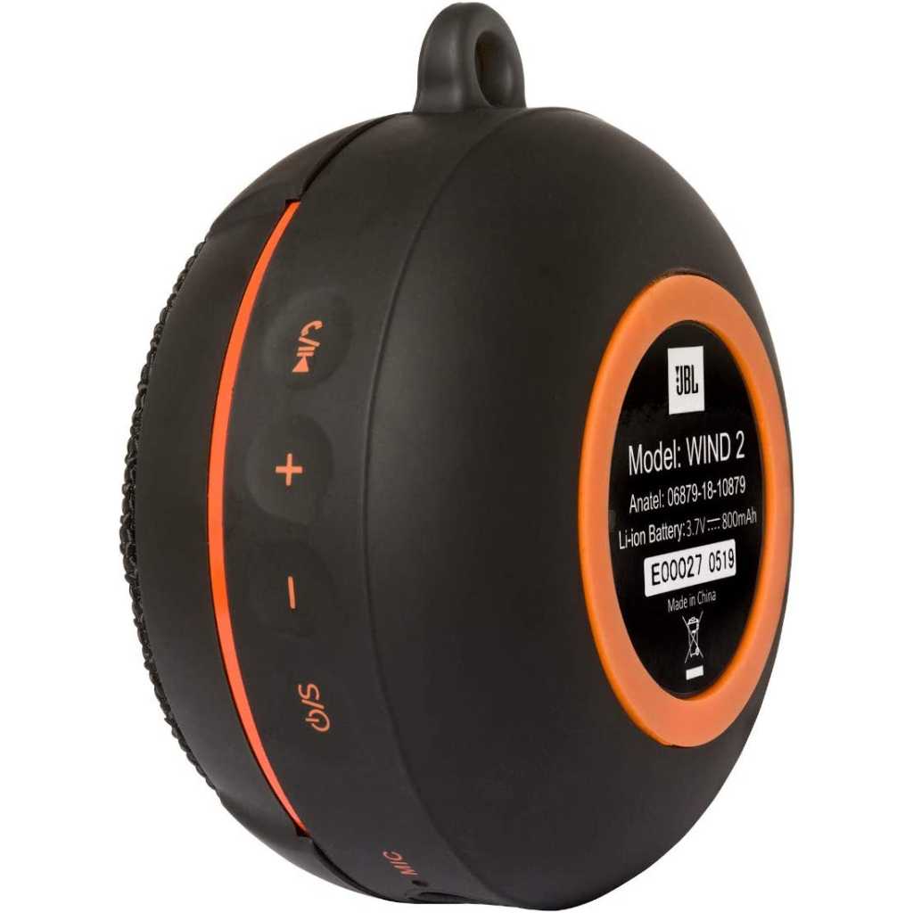JBL Wind 2 FM Bluetooth Handlebar Speaker. Wireless and To-Go Speaker. Easy connection with your electronic devices wirelessly. Hand free calling on the go with built in microphone. Carabiner and bicycle or motorcycle handlebar mounting and bracket supplied for dual outdoor usage. Built in FM Radio (20 stations), microSD card slot (up to 64GB) for MP3 playback and Aux-In for cable audio connectivity, JBL Wind is IPX7 rated waterproof with built in Lithium-ion battery that can last up to 10 hours of music playback. Wind 2 is also equipped with an informative LCD display that displays all the necessary information. Features: Wireless connection – Range up to 8 – 10m Hands-free phone call answering function FM radio SD Card reader AUX IN connection Headphone output Protection up to IPX7 (waterproof resistant) Built-in battery, music play time up to 10hours (according to audio volume) Bracket for handlebar Full range loudspeaker •Rated power (RMS): 5W What is in the box? 1 x JBL WIND2 speaker with bracket 1 x 3.5mm AUX cable 1 x Micro USB cable 1 x Carabiner 1 x Rubber mount 1 x Operation manual Key Features: JBL Wind 2 FM Bluetooth Handlebar Speaker. Wireless connection – Range up to 8 – 10m Hands-free phone call answering function FM radio SD Card reader AUX IN connection Headphone output Protection up to IPX7 (waterproof resistant) Built-in battery, music play time up to 10hours (according to audio volume) Bracket for handlebar Full range loudspeaker Rated power (RMS): 5W