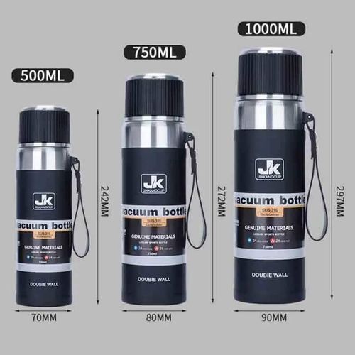The thermos is made of 304 stainless steel and food grade material, which is more insulated and environmentally friendly. In the 24-hour test, the temperature drops from 99 degrees to 65 degrees, and the thermal protection effect is very good! Vacuum insulated water bottle with high performance thermal protection, can keep water cold for 48 hours and hot for 48 hours. 304 stainless steel food grade steel. 304 food grade stainless steel has anti-oxidation and anti-corrosion properties and never leaves a metallic taste or rust.. 100% leak proof and easy to clean. No leaks, no plastic smell. Daily use, running, hiking, camping, etc. suitable for Features: Material: food grade 304 stainless steel Waterproof rating: IPX4 Volume: 1000 ml Size: 26cm*8.5cm The package includes: 1 x Thermos Product type: Thermos