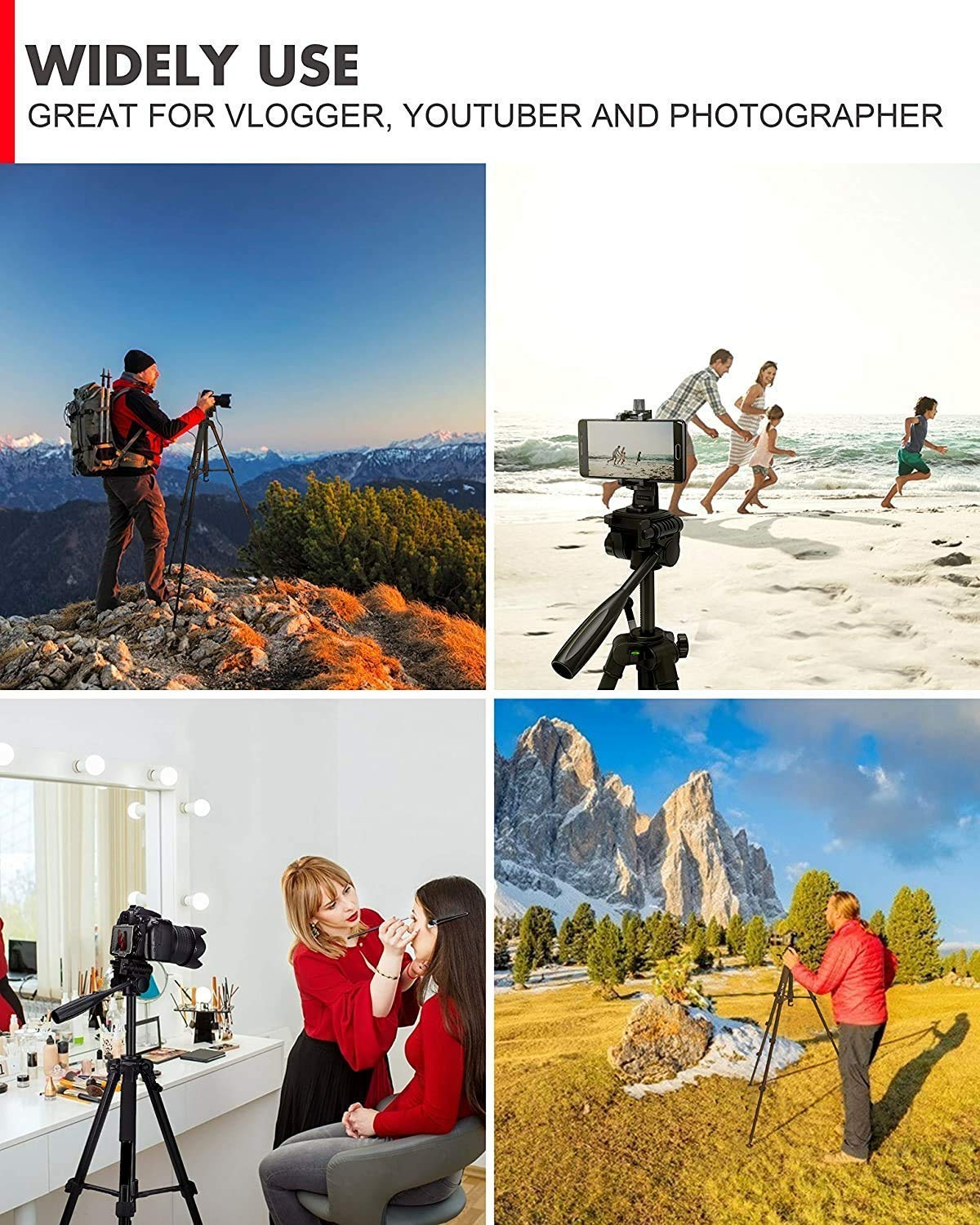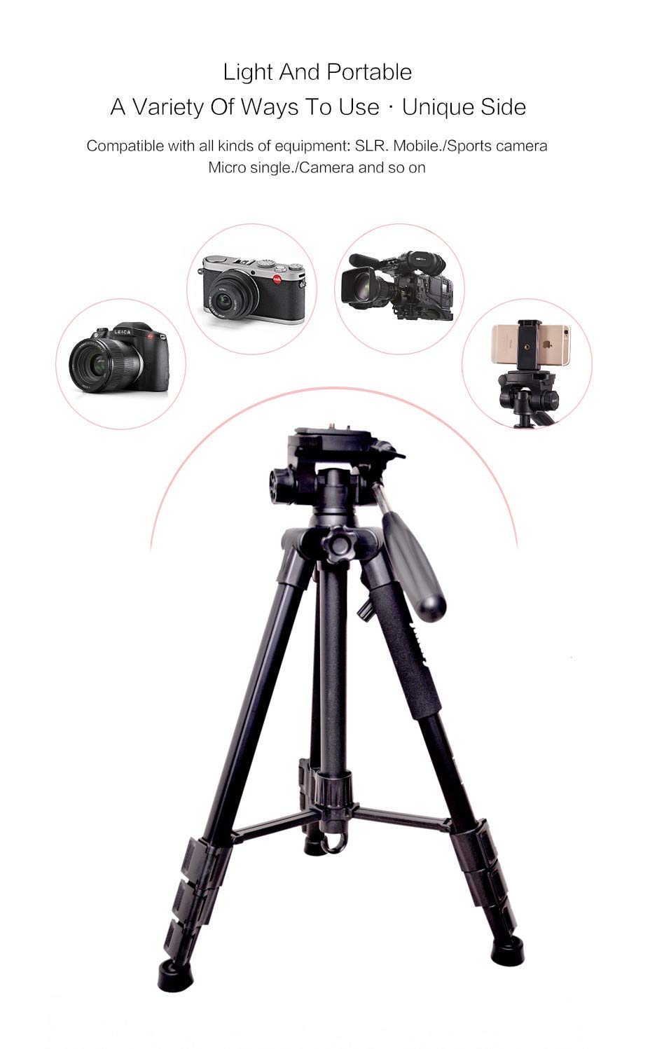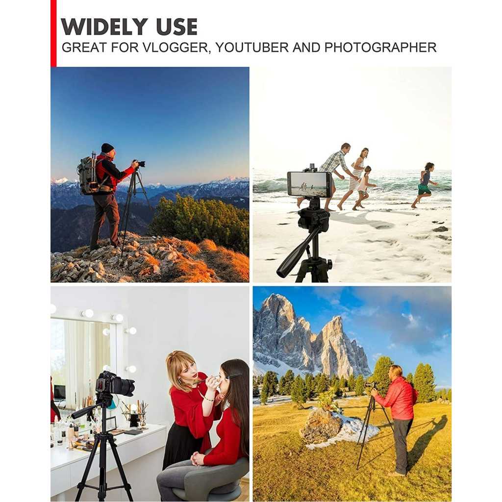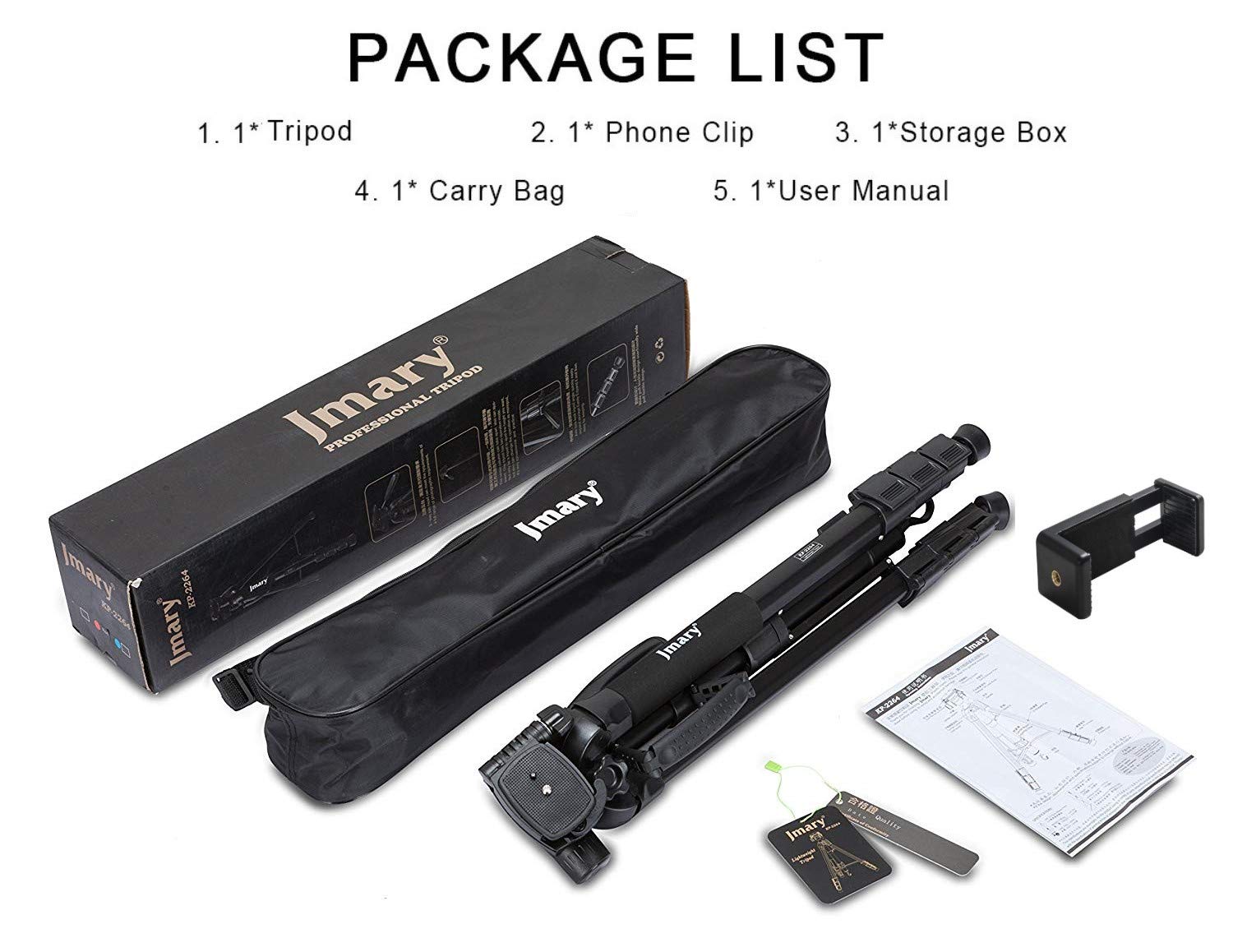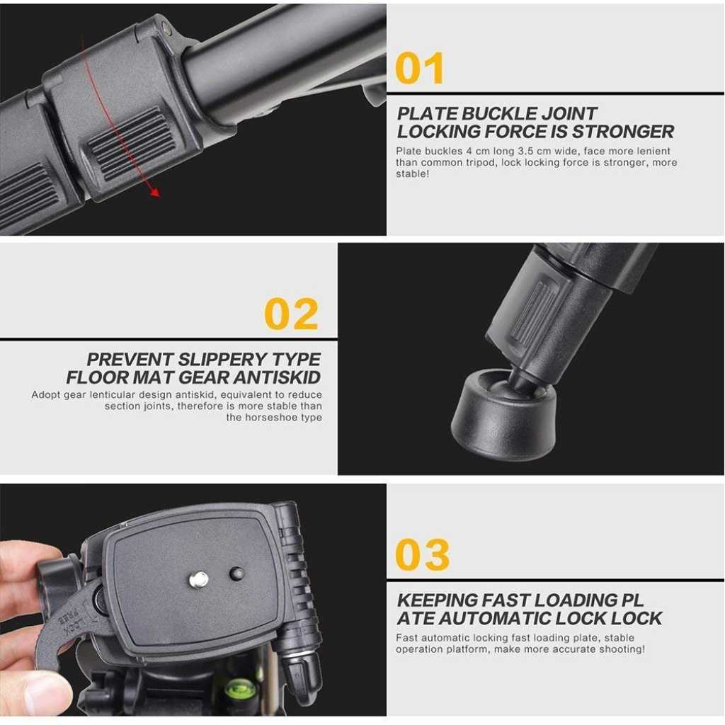 Key Features: ★Jmary 2234 with Max – Load Capacity – 2kg, Max Height – 1400mm/4.6ft Professional Tripod has multiple-section aluminum channel legs ★ This is a professional-level bubble and quick-release plate ★The tripod is very portable and it comes with a carry bag and mobile holder ★ Lightweight and portable with convenient to carry; Minimum Height: 50cm/1.6ft; Weight – 1.16 kgs ★ Quick power lock with high-locking power guarantees maximum camera stability. Rubber feet help increase stability on a variety of surfaces