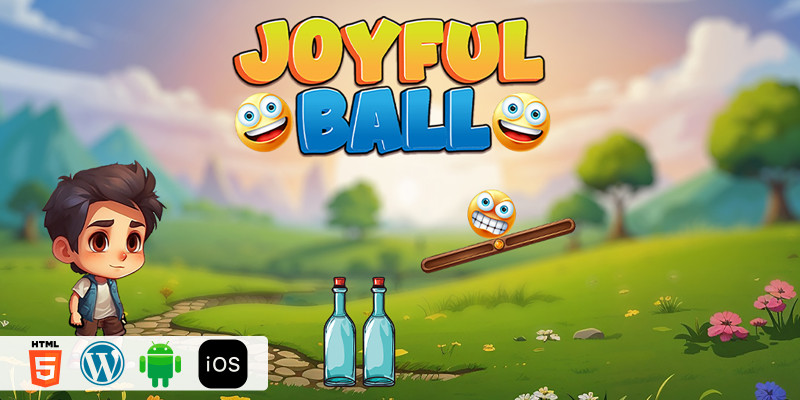 Joyful Ball - HTML5 Construct3 Game. Break the glass bottles by balancing tricky blocks and the ball.