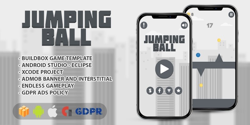 Jumping Ball - Buildbox Game Template. Jumping Ball - Android Studio With GDPR And API 27 + Eclipse + Buildbox