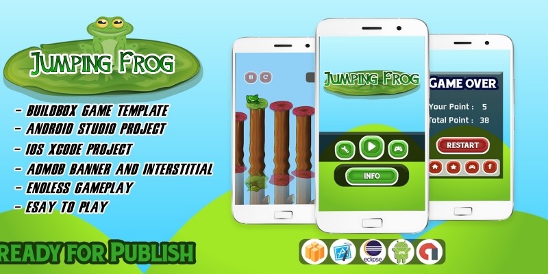 Jumping Frog Adventure - Buildbox Template. Jumping Frog Game For Kids , made by Buildbox Engine