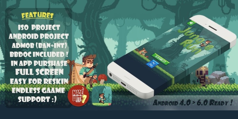 Jungle Runner Game Source Code. This file includes : AdMob ( Banner + Interstitial ) + Buildbox file + All Assets ( HD Images + Sounds ) .