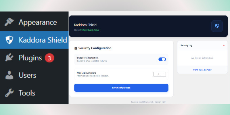 Kaddora Shield Login Security WordPress Plugin. Kaddora Shield secures WordPress login with firewall, brute force protection, and bot blocking to prevent attacks.