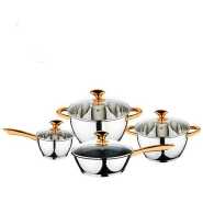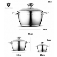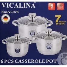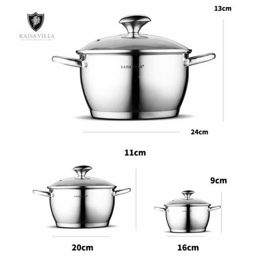 This stainless cookware set is built to last a lifetime. Elegant design, easy to use, nice to stack, excellent range of sizes. You can put them in oven with the lid on. This is the cookware set you will ever need. LFGB & FDA listed for your health, environmental-friendly & PFOA-free Teflon generates zero chemicals, defending health for you and your loved ones ERGONOMIC CURVED HANDLE: revolutionary handles are designed to keep you from fatigue even after long sessions of cooking STUNNING 6 PIECES SET: come in an elegant color, fits well into any decor, the durable, soft, comfortable and colorfast coating on handles and lid finials provide superior heat-resistant performance for your safety during cooking BREAK-RESISTANT LID & MULTI-LAYER BOTTOM: clear glass lid for easy observation during cooking; multi-layer bottoms distribute heat evenly and are compatible with types of cooking range including induction cooker, gas range What’s on the box? saucepan with lid16 X 9.5cm1.9L*Casserole with lid16 X 9.5cm1.9L18 X 10.5cm2.5L20 X 11.5cm3.4L24 X 13.5cm5.8L*Frypan with lid & Marble Coating24 X 6.5cm Key Features: Color : Silver Material: stainless steel. Cover material: heat resistant glass. Number of items in a set: 6 Bottom type: 5-layer. Measurement scale: yes. Handles fastening method: riveted connection. Handle type: hollow. Lid with a steam outlet: yes. Metal polishing: mirror / satin. Dishwasher safe: yes. K-gold plate knob and handle