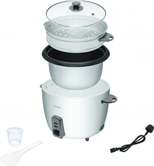 The Kenwood RCM69.AOWH Rice Cooker and Steamer is an easy way to cook rice. With a 2.8 litre capacity bowl, enough space to cook up to 15 cups of rice, it is useful households who love to cook. The keep warm function allows you to keep your rice warm, ideal for those busy families who find it hard to all sit down together. The Rice Cooker and Steamer includes a spatula and measuring cup along with an additional tray for steaming fish or vegetables making the piece very versatile. Easy to clean and the glass lid allows you to view your food whilst cooking and its non stick removable bowl enables easy cleaning. Key Features: Large 2.8 litre capacity bowl with handy keep warm function- enough for cooking fifteen cups of rice Includes additional aluminium tray for steaming fish and vegetables Elegant and easy to clean with a glass lid Non-stick removable bowl, detachable cord for portable use. Includes spatula and measuring cup.
