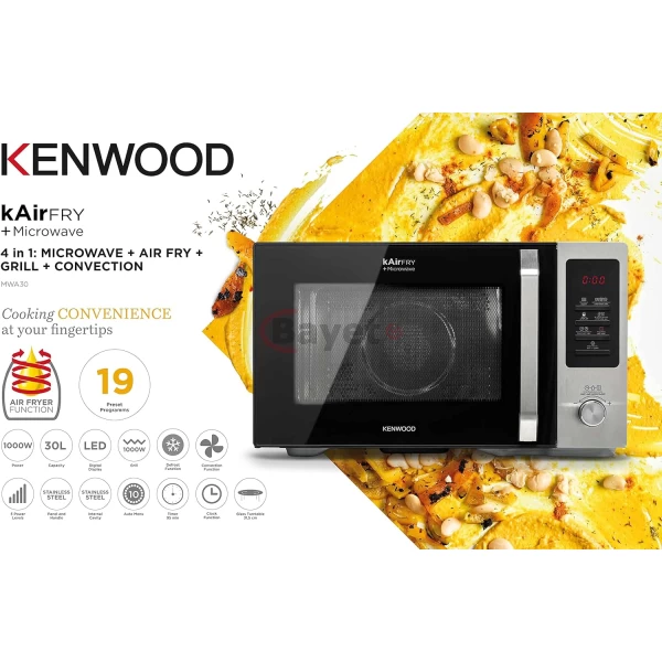 KENWOOD 30L 4-in-1 Microwave Oven + Air Fryer +Grill+ Convection | 1000W | MWA30.000BK. 30L 4-in-1 Microwave Oven + Air Fryer + Grill + Convection with 19 Preset Programs, Digital Display, 5 Power Levels, Defrost Function, 95 Minutes Timer, Clock Function 1000W MWA30.000BK Black/Silver ◼ Ideal For Heating, Cooking and Warming Various Dishes in Short Time ◼ 1000 Watts Power ◼ 1000 Watts Grill Power ◼ 30 Litre Capacity ◼ LED Display ◼ Delayed Start Function ◼ Defrost Function ◼ Opening with Handle ◼ 95 Min Preset Timer ◼ Quick Start Function ◼ 10 Auto Menu ◼ 5 Power Levels Control ◼ 19 Preset Program ◼ Child Safety Loc Wattage: 1000W Capacity-10 cups 1 Glass Carafe 1 Permanent Filter Water level window on both sides of the machine Keep warm plate to keep the coffee warm Anti-drip system Eco function automatic shut-off after 40 minutes On/standby button with led Colour: Black Material: Plastic & Metal Key Features: KENWOOD 30L 4-in-1 Microwave Oven + Air Fryer +Grill+ Convection | 1000W | MWA30.000BK. 30L 4-in-1 Microwave Oven + Air Fryer + Grill + Convection with 19 Preset Programs, Digital Display, 5 Power Levels, Defrost Function, 95 Minutes Timer, Clock Function 1000W MWA30.000BK Black/Silver ◼ Ideal For Heating, Cooking and Warming Various Dishes in Short Time ◼ 1000 Watts Power ◼ 1000 Watts Grill Power ◼ 30 Litre Capacity ◼ LED Display ◼ Delayed Start Function ◼ Defrost Function ◼ Opening with Handle ◼ 95 Min Preset Timer ◼ Quick Start Function ◼ 10 Auto Menu ◼ 5 Power Levels Control ◼ 19 Preset Program ◼ Child Safety Loc