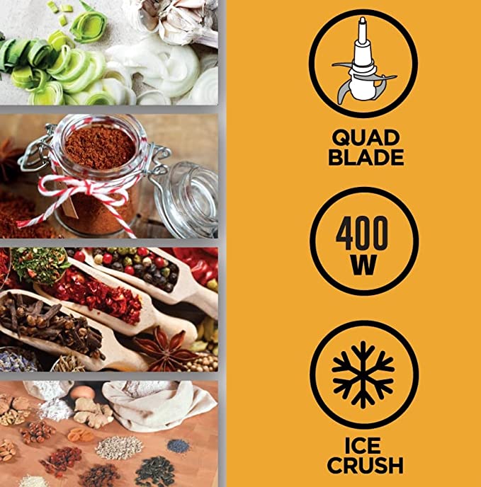 Kenwood Chopper 400W Electric Food Chopper with 500ml Bowl, Dual Speed, Stainless Steel Quad Blade, Rubber Lid, Ice Crush Function CHP40 – Black Save Kitchen Time With The Kenwood Chp40 Mini Chopper. Perfect Choice For The Effortless Preparation Of Herbs, Nuts, Dips, Crushed Ice, And Baby Food, The Device Features Quadblade System. The Quadblade System Of The Appliance Works Twice As Fast As Two Blades That Gives You Even Results Every Time. The Device Is Power Efficient With Just 400W Of Energy Consumption. The Chopper Comes With Two Chopping Speeds To Choose From. This Home Appliance Is Intuitive To Use With Its Simple Controls And Push Down Operation. Available In Black, The Kenwood Chp40 Mini Chopper S Blades Start Or Stop With Just A Simple Push Down On The Lid. Physical Features Key Features Wattage:400W Speed:2 Speeds Weight:1.15Kg A Must Have Home Appliance For Every Home The Kenwood Mini Choppers Specs Are Optimized To Give You High Performance While Keeping The Energy Consumption To Its Minimum. It Consumes Only 400W Of Power. Appliance Makes It Suitable For Herbs, Nuts, Dips, Ice Crushings, And Baby Food. It Has Four Blades For Superior Results. You Can Control The Flow Of The Operation With Device S Two Speed Settings. Smart Design The Kenwood Chopper Chp40 Features A Large 0.8L Bowl For All Your Chopping Needs. It Comes With Stainless Steel Blades For Strength And Reliability. Weighing Only 1.15Kg, This Sleek Appliance Is Very Easy To Use And Comes With A Safety Interlock. Removable Parts Of The Chopper Are Dishwasher Safe. Key Features: Kenwood Chopper 400W Electric Food Chopper with 500ml Bowl, Dual Speed, Stainless Steel Quad Blade, Rubber Lid, Ice Crush Function CHP40 – Blac k Easy Press,Down Operation Powerful 400,W Motor Stainless Steel Blade That Stays Sharp Large 0.8 L Bowl Capacity Dishwasher Safe