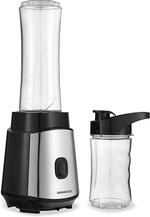 Key Features: Kenwood Personal Blender 350W Smoothie Blender Cum Smoothie Maker with 570ml & 400ml Tritan Smoothie2Go Bottle and Lid, Ice Crush Function BLM05.A0BK Black/Silver 350W motor for effortless blending 2 travel goblets 570ml & 400ml Tritan material goblets – shatterproof and BPA free Kenwood blender is an all purpose blender-mixer and grinder ideal for blending fresh and frozen fruits in seconds. Pro extractor blades crush seeds, skins and stems, giving even consistency for a smooth nutrient vitamin drink. Mince garlic, chop onions or grate cheese in seconds. Whip up milk shakes and smoothies in seconds. With coffee and tea becoming the go-to staple boosters, a thick and creamy shake using the Kenwood BLM05.A0BK Blender Smoothie Maker can make for an enjoyable diversion from the usual. Equipped with Tritan material goblets, it ensures shatterproof and stable use. Also, it is BPA-free, which makes it safe to use around kids. For smooth and easy blending, the appliance has a 350W motor. Dishwasher Safe: Yes Container Capacity: 570 ml and 400 ml Colour: Silver and Black