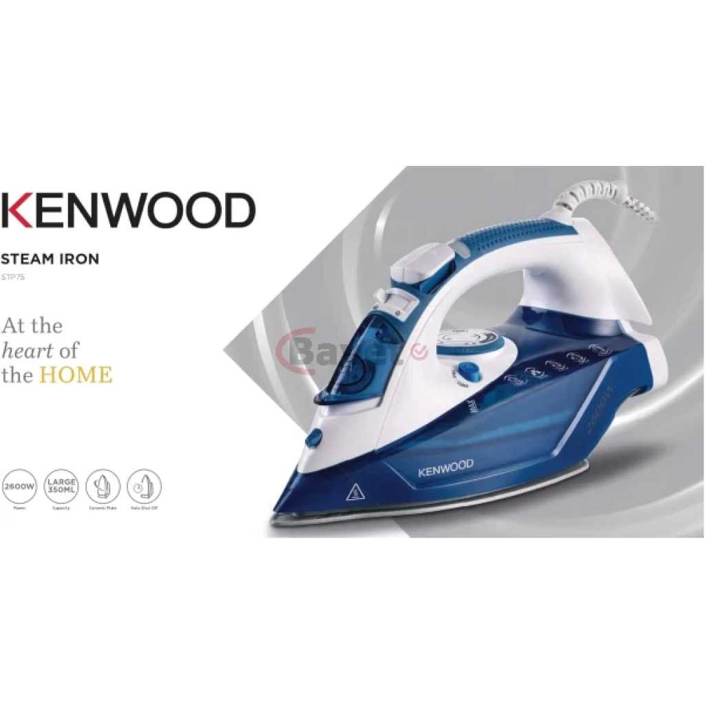 Kenwood Steam Iron STP75.000WB | 2600W | Ceramic Soleplate. Kenwood Steam Iron comes with 2600W power and Auto-OFF function preventing unwanted burns. 350ML Large water capacity, Durable scratch-resistant Ceramic Soleplate. steam power 45/140g for effortless and stubborn crease removal. Anti-drip for spot-free iron & prevent water leakage. Anticalc and Self-clean functions to preserve the iron life. Auto shut-off: Prevents burns Scratch-resistant ceramic soleplate: Durable Steam power: 45/140g for removing creases Anti-drip: Prevents water leakage Anticalc and self-clean functions: Preserves the iron’s life Steam, temperature, and fabric type regulation Steam ready light Cord winder Vertical and dry ironing The pointed tip of the ceramic plate