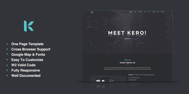 Kero - Onepage HTML5 Portfolio Template. KERO is a Creative One Page Portfolio HTML5 Template. It’s Fully Responsive based on Boots
