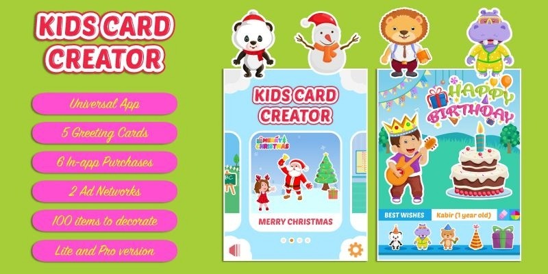 Kids Card Creator - iOS App Source Code. Personal Greeting Cards builder for Kids and Adults