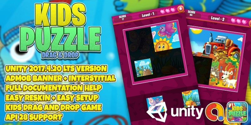 Kids Puzzle Drag And Drop - Unity Project. Kids Puzzle Drag and Drop UNITY + Admob + EASY RESKIN ( Jigsaw for kids )