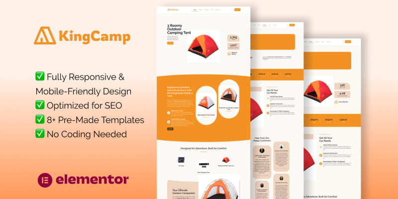 KingCamp – Elementor Template Kit. KingCamp – Elementor Template Kit for Outdoor Camping & Adventure Gear