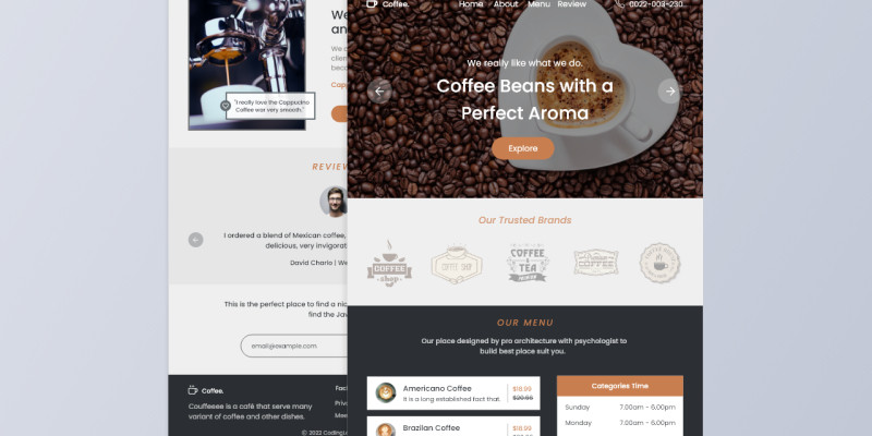 Kingz Coffee - Responsive Coffee Shop Template. A modern, fully responsive coffee shop website template featuring a sleek UI, beautiful menu, and smooth animations.