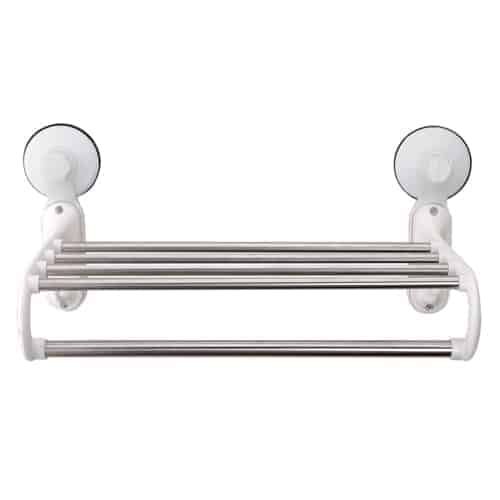 Kitchen And Bathroom Towel Rack With Magic Suction Cup and 5 Crossbars – White Add a touch of modern elegance to your bathroom with Bath Towel Rack With Magic Suction Cup. It features a sturdy towel holder with 5 bars and it comes with the wall-mounted suction cup. This Towel rack will bring a functional yet elegant element to your Bathroom. This uses space-saving construction to help you better organize and manage your Bathroom. Key Features: Kitchen And Bathroom Towel Rack With Magic Suction Cup and 5 Crossbars – White Bathroom Towel Rack Suction Cup design, simply stick it over the smooth surface of glass or tile It helps save space and reduce clutter in your home Stylish design complements your interior decor whilst keeping your towels handy and easy to reach Sturdy and durable Easy to install Dimension: (Lenght x Breadth x Height) 40 x 25 x 21 cm Package: 1 x A towel rack(with packaging box)