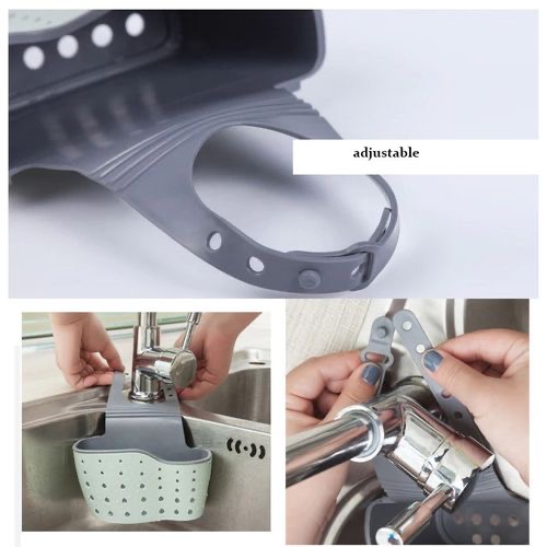 Keep this Kitchen Sponger Holder and Drainer near your kitchen sink to keep it mess-free. This sponge holder is designed to keep the kitchen sponge dry. With its detachable strap, you can mount it on sink tap or simply place it near the sink. The porous bottom of this sponge drainer helps to drain water quickly. You can also keep this sponge rack in your bathroom to store your toiletry supplies. It is easy to install and can be conveniently removed whenever needed. Key Features: High-performance food grade silicone material Health and environmental protection, non-toxic Odorless, flexible and durable Can hang in the kitchen and bathroom Draining hole: quick draining and keep item dry Storage Holders & Racks, Bathroom Shelves, Classification: Non-folding Rack Applicable Space: Kitchen Material: Plastic