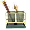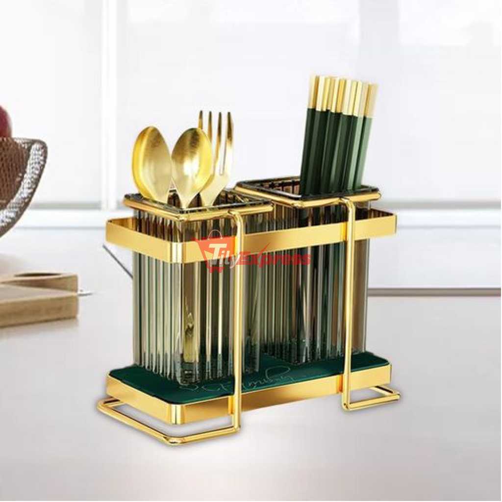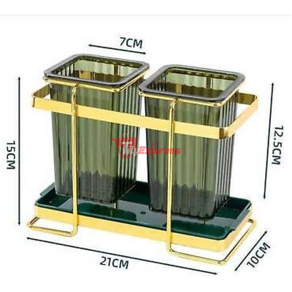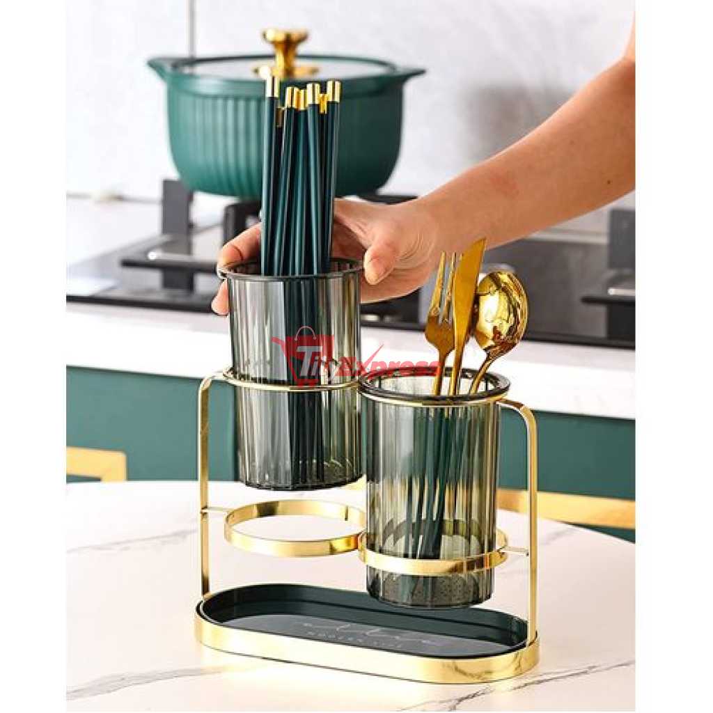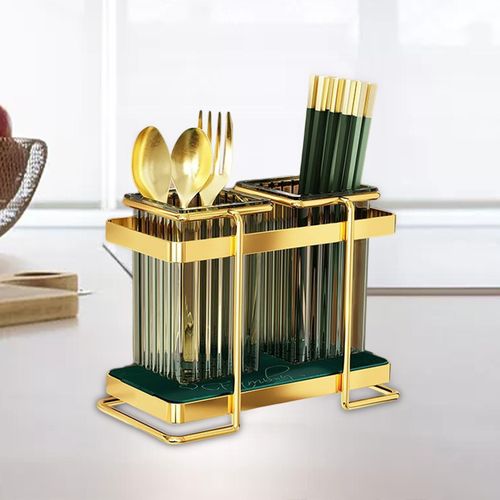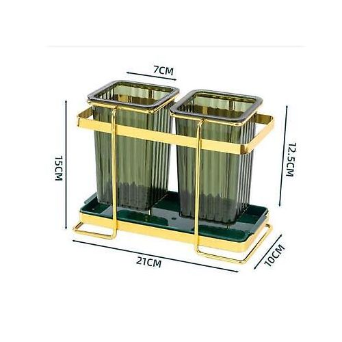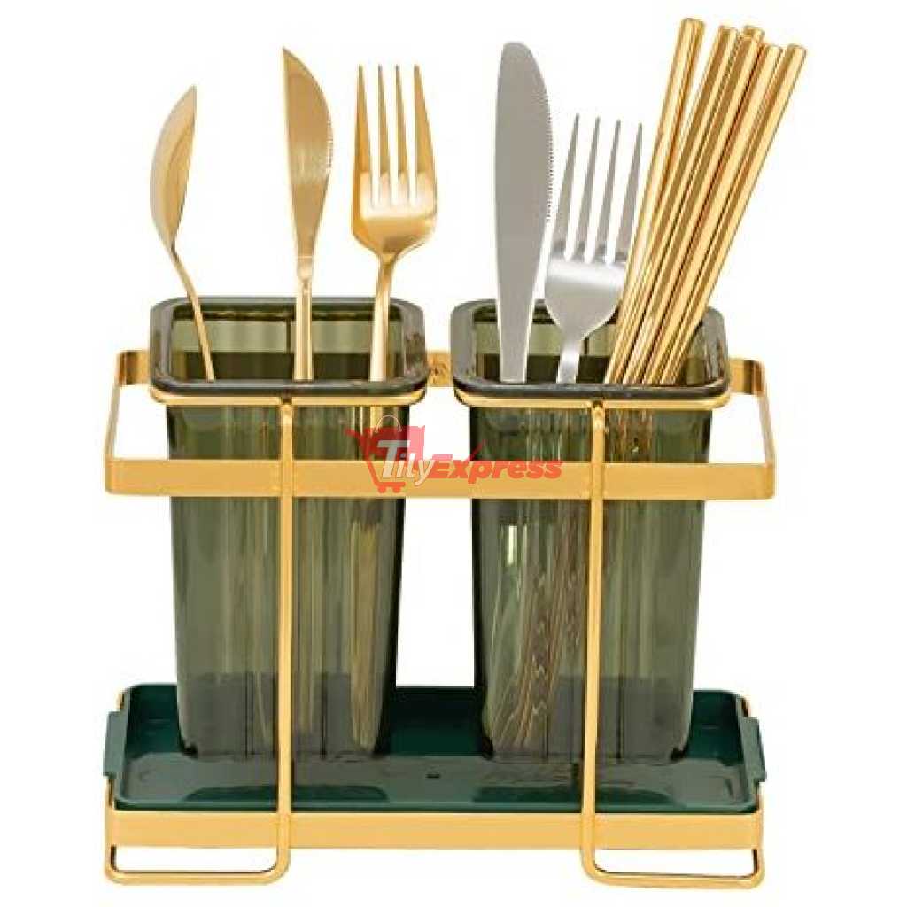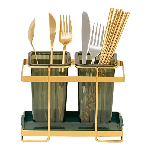 Kitchen Utensil Holder For Countertop 2 Cups Cooking Caddy Cutlery Rack For Fork Spoon Knife Spatula- Green SUPER MOISTURE-PROOF : There are 30 drain holes at the bottom of each container, It can make the water flow away faster, which can keep the inner dry. The iron frame makes the cup hanging in the air for better ventilation. INGENIOUS MATERIAL COMBINATION: The combination of an iron frame and translucent green plastic cup, makes the utensil holder look modern and avant-garde, simple and atmospheric. 2-CUP DESIGN: It has two separate utensil pots, which can classify your knives, forks, spoons, spatulas, whisks, and other cutlery. so that you can keep all kitchen utensils together, easy for you to take and use. LUXURIOUS DECORATION: The combination of matte pale gold and green bursts out a harmonious beauty, making it look textured. The golden frame is a light gold / bronze-gold. It’s time to decor your kitchen with this beautiful and practical utensil jar. EASY TO CLEAN: The tray and 2 cups are removable, convenient for you to clean up stagnant water. Suggest you wash them regularly and dry them. Key Features: Kitchen Utensil Holder For Countertop 2 Cups Cooking Caddy Cutlery Rack For Fork Spoon Knife Spatula- Green The latest cutlery container looks modern and fashionable. Luxury iron art shows extraordinary taste. High-quality electroplating, long-lasting luster, is not easy to rust. Translucent container, it’s not easy to hide dirt. Double cup design, It can store more tableware. Organize your kitchen countertop neat and tidy. Each cup has 30 drain holes at the bottom, which can keep the inner dry. It has a beautiful iron frame, it hangs the cups in the air for better ventilation. The detachable tray is convenient for cleaning and can store other small items either.