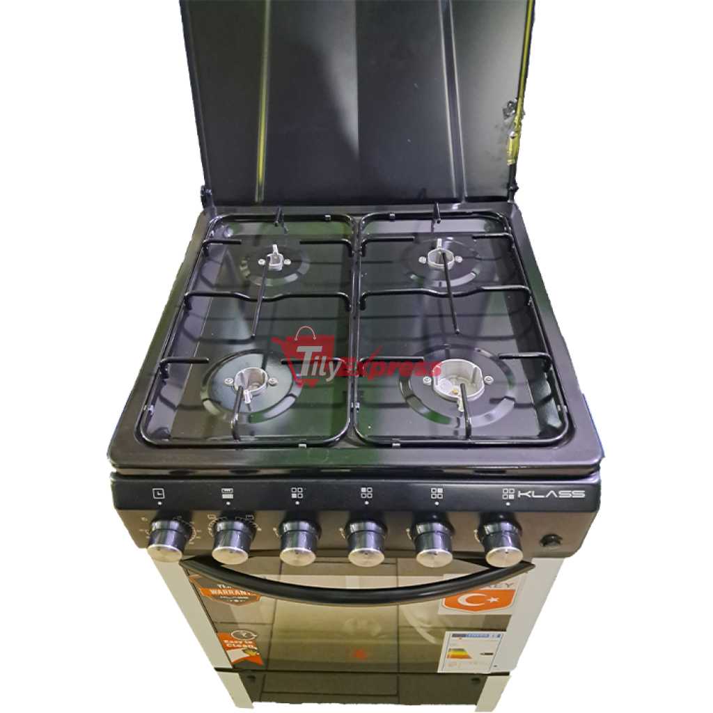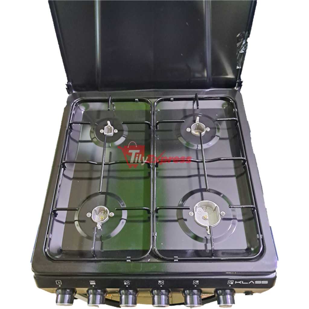 KLASS 60x60cm Full Gas Cooker, 4 Gas Burners, Gas Oven & Grill, Oven Lamp & Timer, 4TTE-6640BLK – Black. Klass Full Gas Cooker. 60x60cm Cooker. 4-Gas Burners. Gas Oven. Grill Oven Lamp Time Adjustable Stands. Strong Knobs Cast Iron Pan Supports 2 Years Manufacturer’s Warranty. Key Features: KLASS 60x60cm Full Gas Cooker, 4 Gas Burners, Gas Oven & Grill, Oven Lamp & Timer, 4TTE-6640BLK – Black. Klass Full Gas Cooker. 60x60cm Cooker. 4-Gas Burners. Gas Oven. Grill Oven Lamp Time Adjustable Stands. Strong Knobs Cast Iron Pan Supports 2 Years Manufacturer’s Warranty.