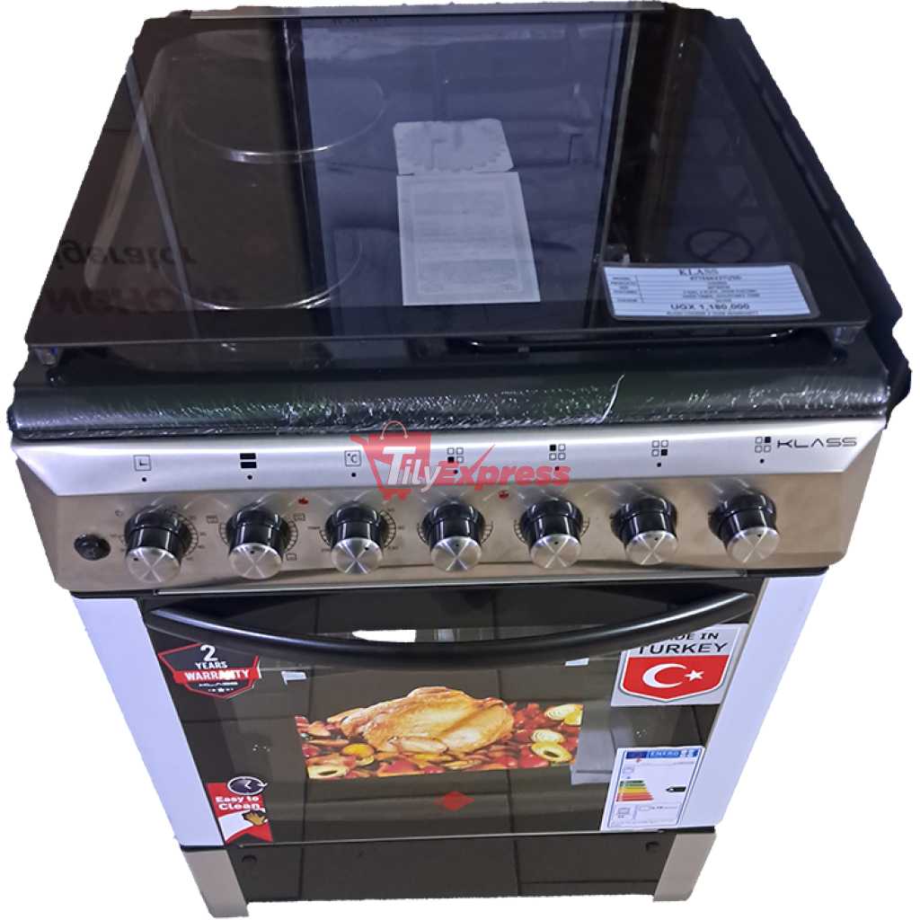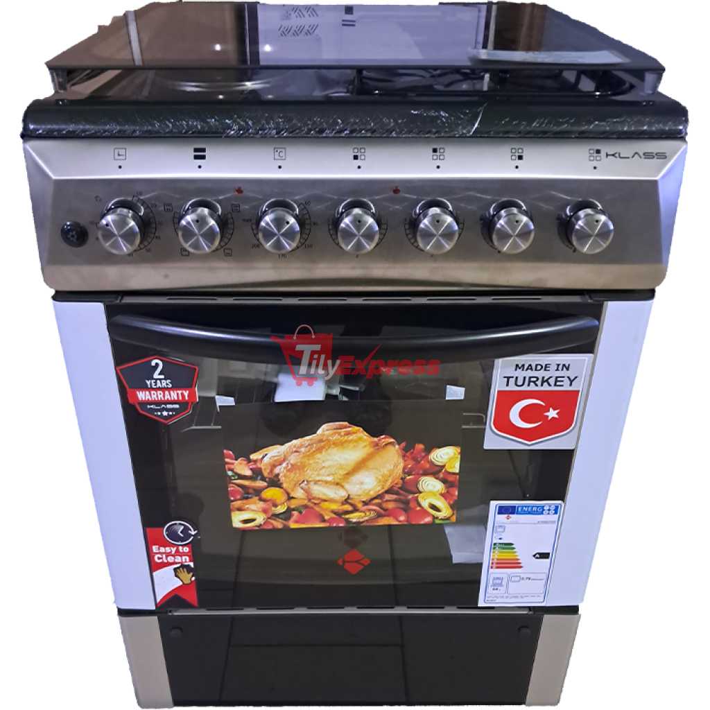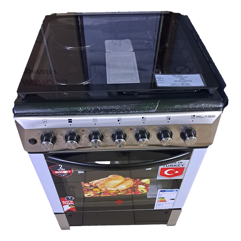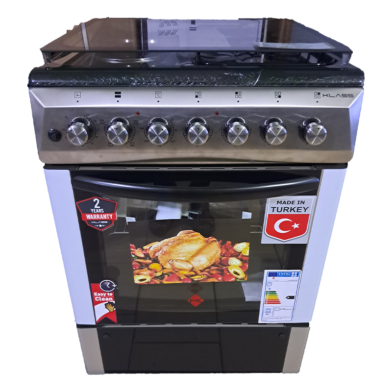 KLASS Cooker 60x60cm, 2 Gas Burners + 2 Hot Plates, Electric Oven & Grill, Rotisserie, Oven Lamp & Timer, 4TTE-6622TI/SD – Inox. Klass Combo Cooker. 60x60cm Cooker. 2-Gas Burners and 2 -Hot Plate Electric Oven. Grill Rotisserie Oven Lamp Timer Adjustable Stands. Strong Knobs Cast Iron Pan Supports 2 Years Manufacturer’s Warranty. Key Features: KLASS Cooker 60x60cm, 2 Gas Burners + 2 Hot Plates, Electric Oven & Grill, Rotisserie, Oven Lamp & Timer, 4TTE-6622TI/SD – Inox Klass Combo Cooker. 60x60cm Cooker. 2-Gas Burners and 2 – Electric Plate Electric Oven. Grill Rotisserie Oven Lamp Timer Adjustable Stands. Strong Knobs Cast Iron Pan Supports 2 Years Manufacturer’s Warranty.