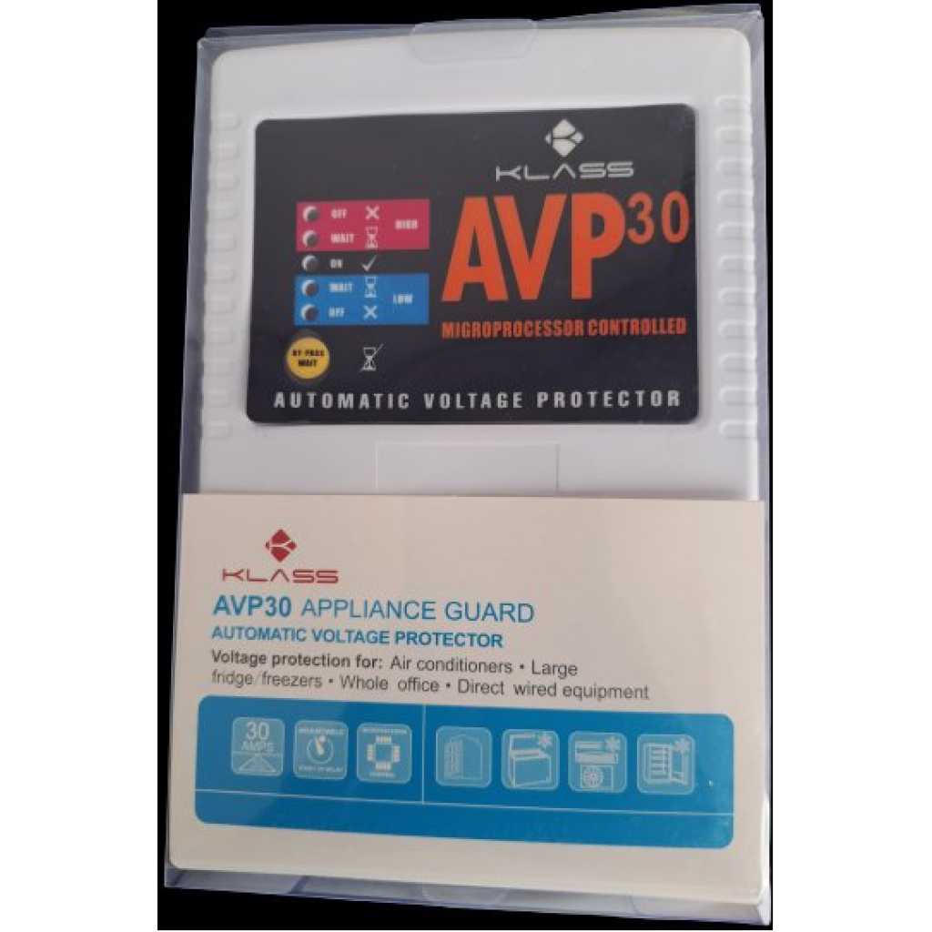 Key Features: KLASS KL-AVP30 30AH Air Conditioner Power Surge Protector – White. The AVS30 micro is a single phase Automatic Voltage Switcher rated at 30 Amps with a built in microprocessor . The AVS30 will switch off the equipment connected to it if the mains power goes outside pre set limits, and will reconnect automatically when the mains power returns to normal. Reconnection takes place after a time delay, to ensure mains stability. Protects Against: High voltage, low voltage, spike/surges, powerback surges and Loss Of Neutral (LoN) Ideal For: Air conditioners, Large fridge/freezers, whole office, complete circuit Max Power: 30A Wait Time: User adjustable from 10 seconds and 10 minutes
