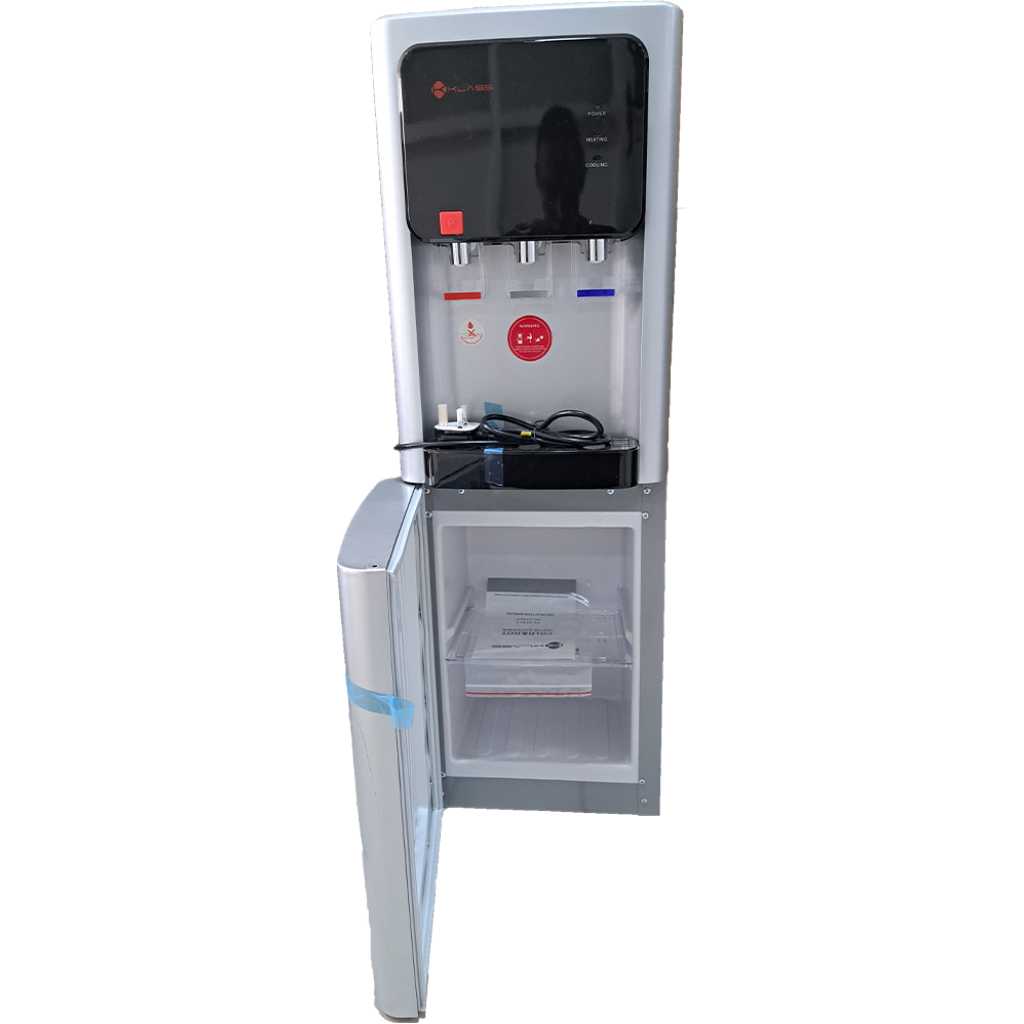 KLASS Water Dispenser KL-3TGLC; Hot, Cold & Normal, 3-tap Top Loading With Bottom Fridge – Grey. Quench your thirst with a cool glass of water provided by the Orvica Water Dispenser with Refrigerator Cabinet. This powerful, free-standing water dispenser features THREE faucets for dispensing water. All you need to do is hold down the desired lever, and out comes refreshing water in an instant. This device can accommodate all types of commercially available large water bottles. Onboard LED lights provide you with information about the dispenser in a glance. What’s more? This incredible water dispenser also comes with a functional refrigerator at its bottom, which can hold your lunch boxes, takeaways, smaller bottles of water, and more. The fridge is powerful enough to cool all your stored contents. The water dispenser and the fridge are made using high quality materials. This fantastic Black and Grey device, with its incredible features, makes a perfect addition to your homes and offices. Rated Voltage: 220V-240V~ Rated Frequency: 50-60Hz Rated Power: 580W Heating power: 500W Cooling Power: 80W Hot Water: 85-95 degrees Celsius Cold Water: 8-12 degrees Celsius Relative Humidity: <90% Refrigerant: 134a/32g Cooling Current: 0.8A Climate Class: T Child safety lock on hot water spout