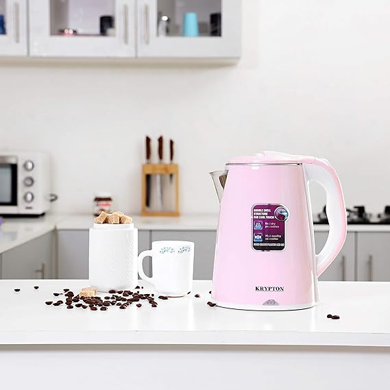 Krypton 1.8L Cordless Electric Kettle 1500W KNK6062, 360 Degree Rotational Base, Detachable Base, Concealed Heating Element, Auto Shut-off, Dry Boil Protection, Double Layer Stainless Steel, Cordless, Rapid Boil Krypton 1.8L Cordless Electric Kettle – One of those handy items with a long lifespan and adequate heating! A stylish Choice. The Krypton Electric Kettle provides you with a stylish design Textured Kettle combining a high-quality glass material for a rich feel meaning it will bring style to any kitchen worktop. The large, 1.8-liter capacity means you’ll have plenty of hot water for any large family or team or work colleagues. Filling the large kettle is also easy thanks to the open lid design. It is a 1500W, kettle that boils quickly and quietly, even when it is at full capacity. Boil Up to 7 Cups in One Go This kettle features rapid boil action, meaning your water will be ready in no time, and a generous 1.8L capacity, allowing you to make up to 10 drinks with just one use. You can also easily keep an eye on the water level, thanks to the clear water window. Stylish Design, Stainless Steel Inner – This electric kettle is made of strong double layer housing with stainless steel inner body which is distinguished by durability and the outer beautiful design makes it stylish. AUTO SHUT-OFF & BOIL-DRY PROTECTION – Automatic shut off function upon boiling and the boil-dry protection prevents it boiling if there is insufficient water present. 360° ROTATIONAL BASE – To keep the kitchen tidy, the base has integrated cord storage so it can be tidied away at your convenience & the handy 360° base means it can be comfortably used by right & left-handed people. CAPACITY 1.8L – The capacity is 1.8L so will be good size for the family. Large size for making multiple cups of tea or coffee. To make pouring comfortable and easy the kettle features an ergonomic handle. DETACHABLE BASE, CONCEALED HEATING ELEMENT – To keep the kitchen tidy, the base has integrated cord storage so it can be tidied away at your convenience. STAINLESS STEEL – This electric kettle is made of stainless steel and is distinguished by their durability and makes a healthy kitchen appliance to heat up water, and it is also very easy to clean.