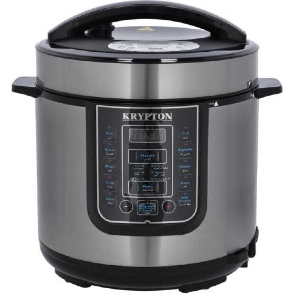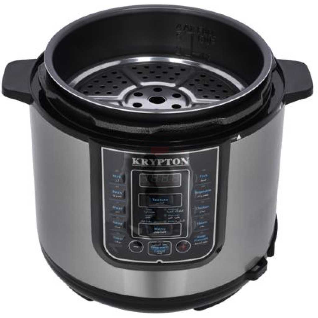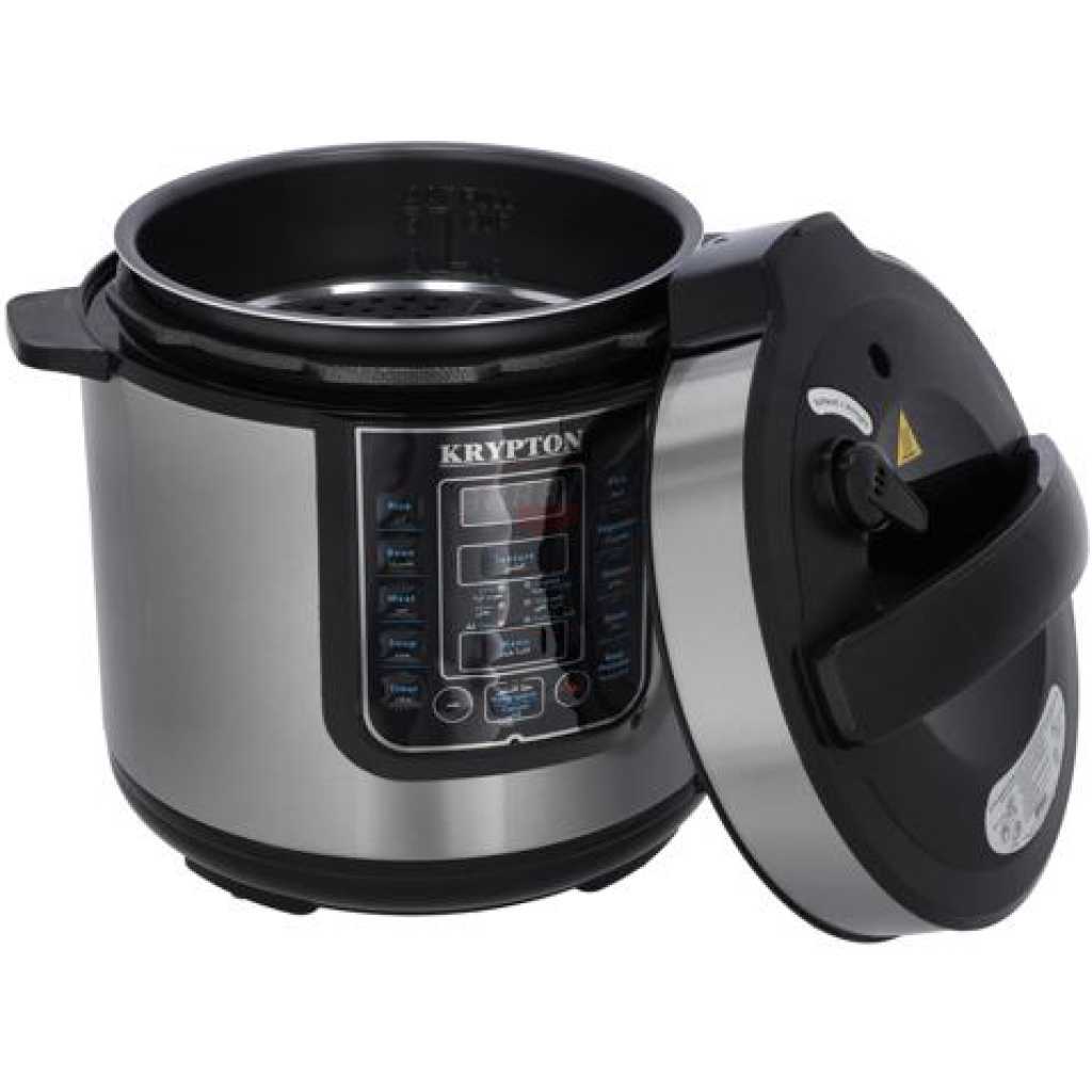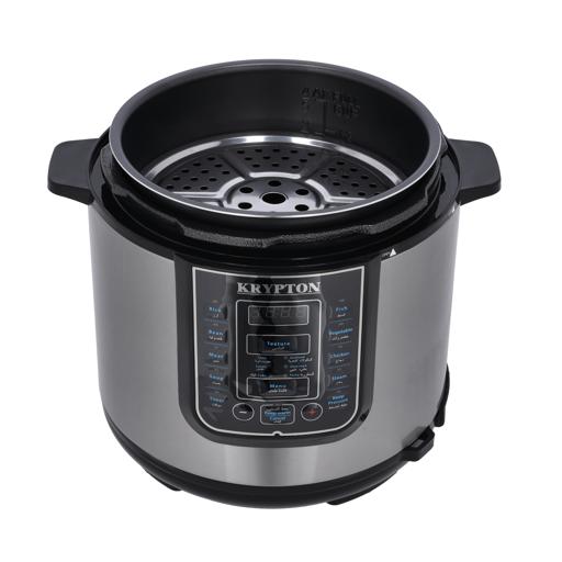 Krypton 6 L Multi-functional Electric Rice, Pressure Cooker KNPC 6297 , Silver it’s convenient cooker’s generous capacity perfectly cooks any variety of rice with specialized functions for both White and Brown Rice. Once the rice has finished, it will automatically switch to Keep-Warm so there’s no need for monitoring or stirring. Unique Sensor Logic Technology uses an on-board micro-computer that ‘thinks’ for itself to automatically optimize cooking temperature to enhance flavor and texture. It Simultaneously Steams Food: Nutritious And Healthy. The Steam Tray allows for healthy steaming of meats and vegetables, even as rice cooks below! Need rice in a pinch? Save time with the Quick Rice function which cuts cooking time by up to 50%. The programmable is great for families on the go, delivering delicious rice ready when it’s needed. And when the cooking is done, the inner cooking pot and all accessories remove for easy cleanup in the dishwasher. Recipe Booklet, Steam Tray, Rice Measuring Cup, Serving Spatula and Soup Ladle included. Key Features: Krypton 6 L Multi-functional Electric Rice, Pressure Cooker KNPC 6297, Silver Multi Function Automatic Cook One touch preset buttons/Automatic. Safe Lock Lid with Steam release/ Non stick Inner Pot. Replaces six common devices: Slow cooker, Canner, Soup Maker, Steamer, Cookware and Rice Cooker. Alumnium inner pot.