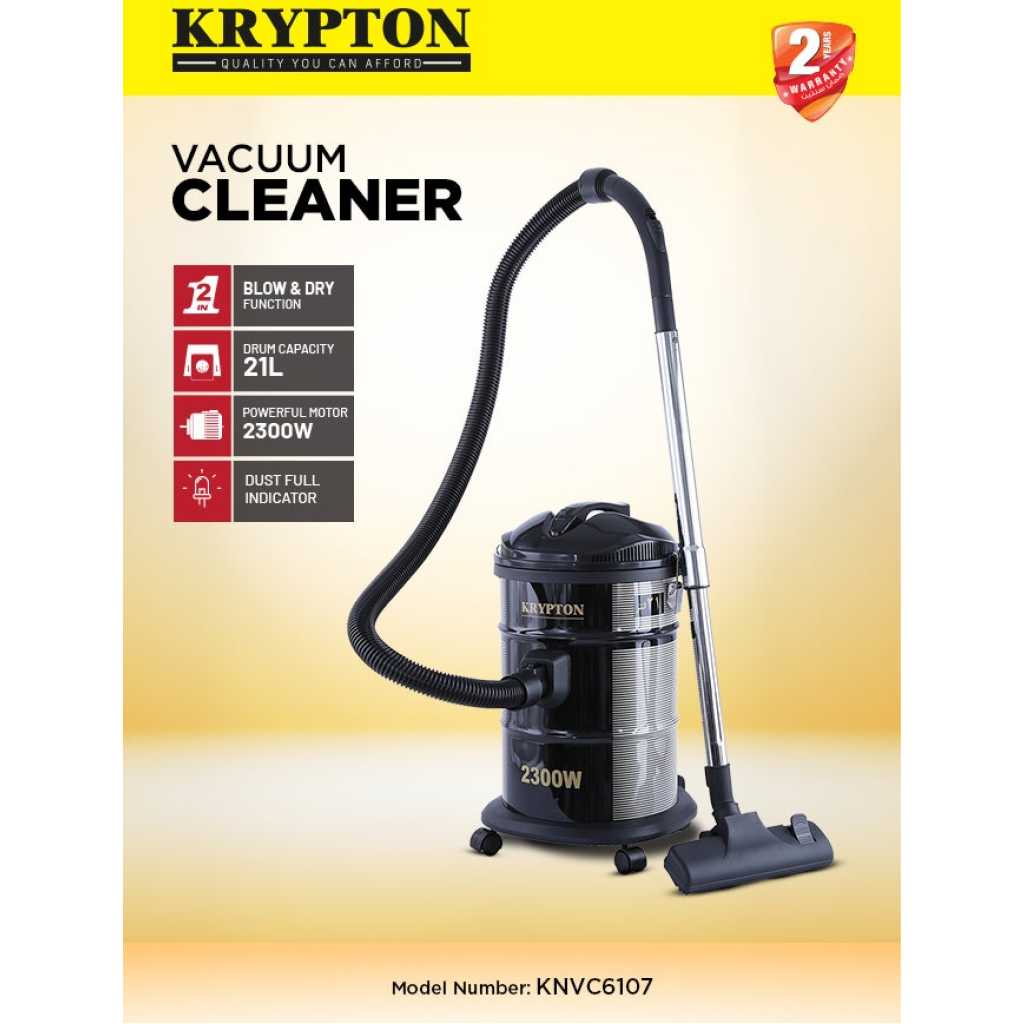 KRYPTON Drum Vacuum Cleaner with Dry & Blow Function/Large Dust Bag Capacity & Dust Bag full indicator, Wider & Flexible Hose 21 L 2300 W KNVC6107 Black