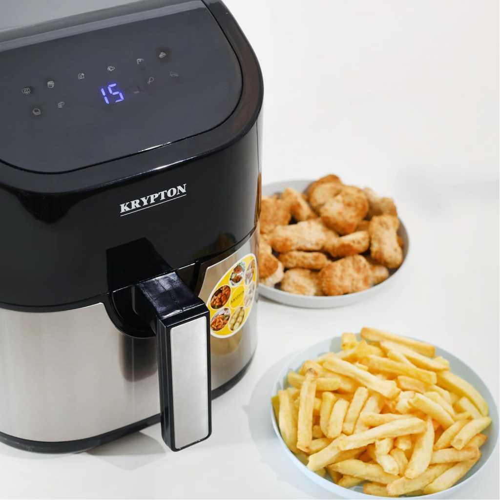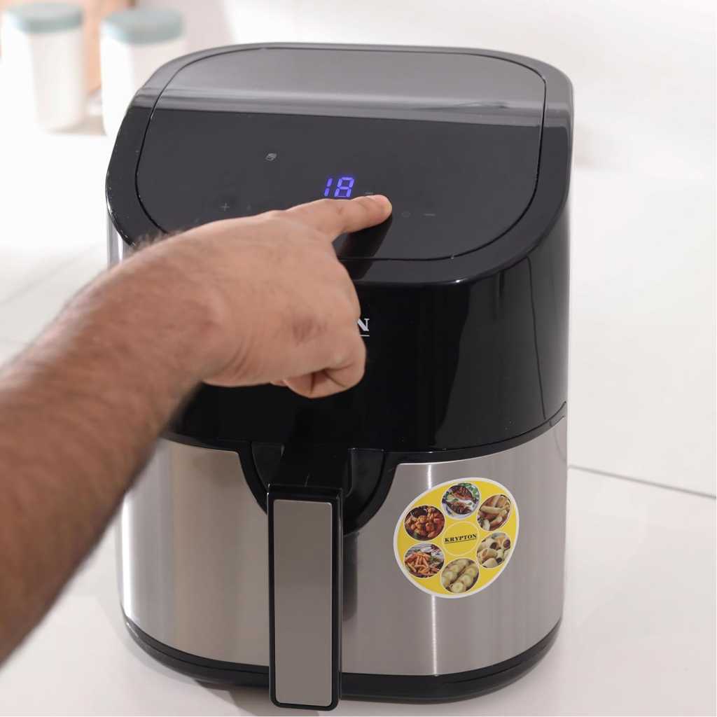 Krypton KNAF6227 1500W Digital Air Fryer 3.5L Hot Air Circulation Technology for Oil Free Low Fat Dry Fry Cooking Healthy Food TOUCH SCREEN LCD DISPLAY – This device has a touchscreen LCD display. It lets you adjust the timer, the temperature and lets you know of the cooking progress. DOUBLE PROTECTION CIRCUIT – Double protection circuit ensures maximum safety. This device is layered, and you can check on your food while it is being fired. 60 MINUTES TIMER – The timer can set up to maximum 60 minutes. You can choose and adjust it according to the cooking requirements. Once set, it will heat up to the required temperature and start cooking. TEMPERATURE CONTROL SYSTEM OF 80 TO 200C – This fryer offers a wide range of temperature settings. You can set it at any temperature from 80C to 200C. This plastic body of this device can withstand a very high temperature of 280C. It has a PP housing up to 137C and overheat protection. S/S304 HEATING ELEMENT – This heating element is located in the base of the fryer and ensures even distribution of heat. COOL TOUCH HOUSING AND HANDLE FOR SAFETY – The outer body and handles of the digital fryer are made from non-conducting material and are safe to touch even when the device is cooking.